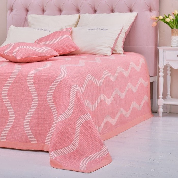 Покрывало хлопковое Этель «Волны» 220×240 см, цвет розовый, 100% хлопок, 300гр/м2