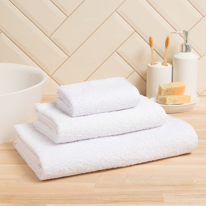 Полотенце махровое Экономь и Я 30*60 см, цв. белый, 100% хлопок, 350 гр/м2