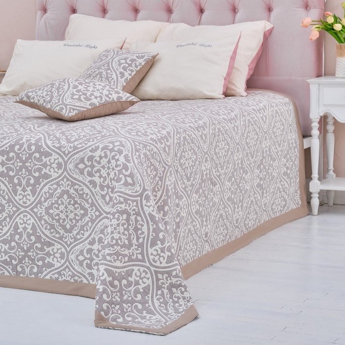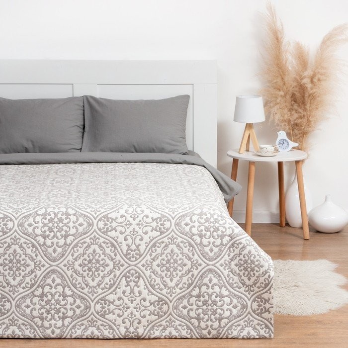 Покрывало хлопковое Этель «Орнамент» 200×240 см, цвет серый, 100% хлопок, 300гр/м2