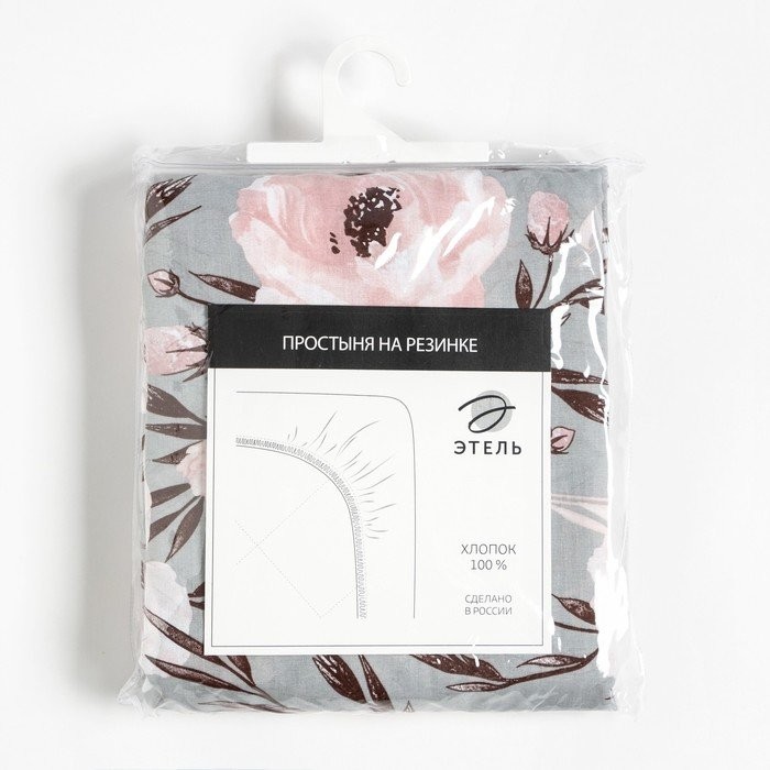 Простыня на резинке Этель 160х200×25 см, Peonies, 100% хлопок, поплин,125 г/м2