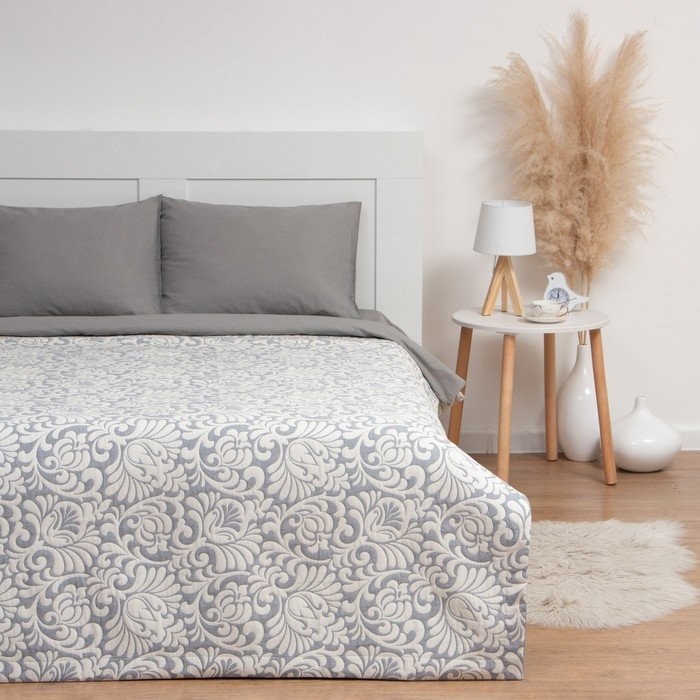 Покрывало хлопковое Этель «Узоры» 180×240 см, цвет серый, 100% хлопок, 300гр/м2