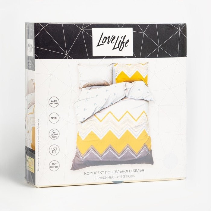 Постельное бельё LoveLife Евро «Графический этюд» 200×217 см, 225×240 см, 50х70см-2шт,100%хлопок,сатин125г/м²