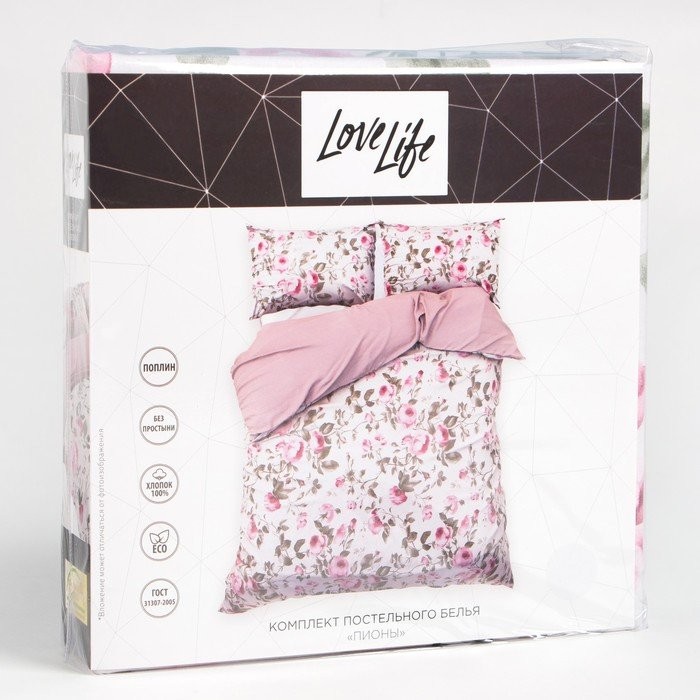 КПБ 1,5 сп LoveLife «Пионы»: пододеяльник 150*217см+наволочка 50*70см-1шт, поплин, 125г/м²