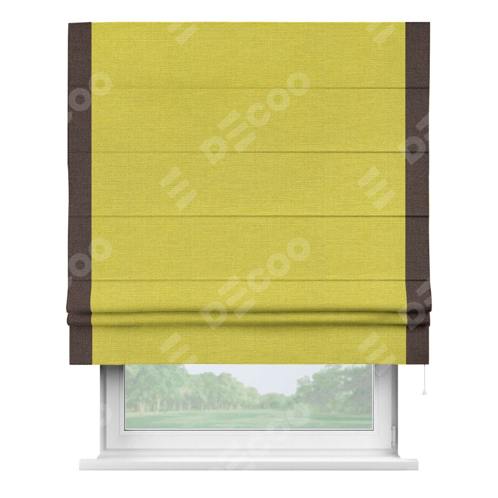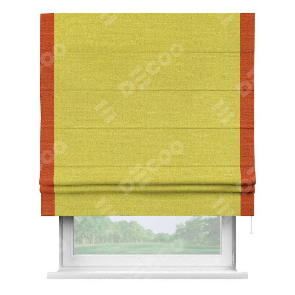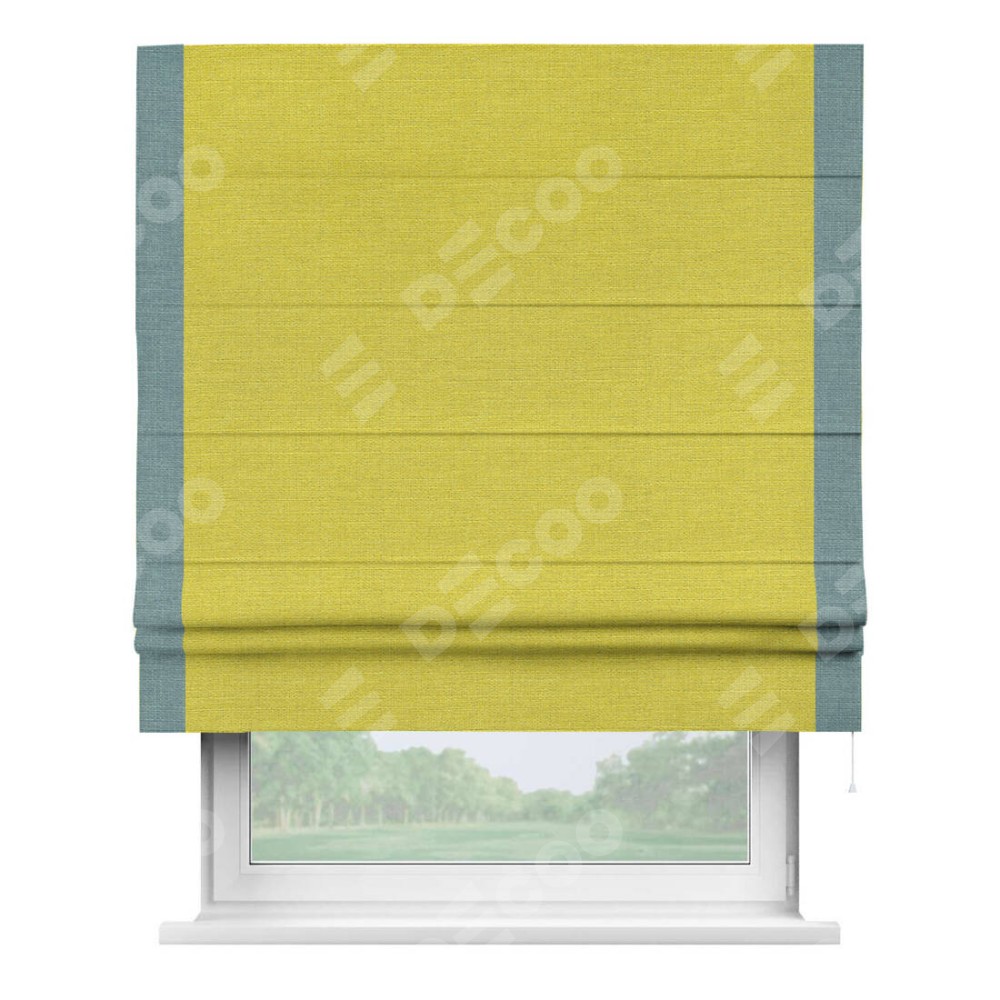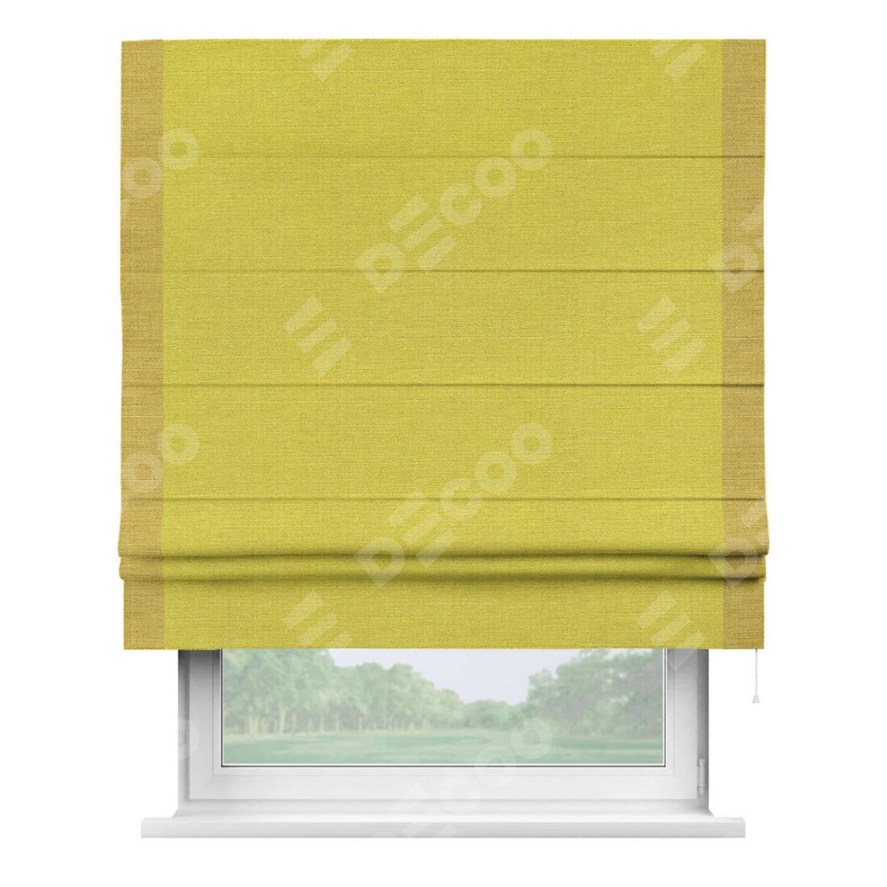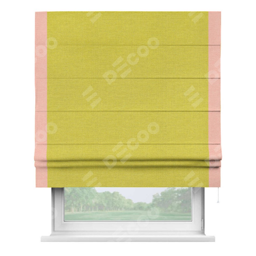 Римская штора «Кортин» с кантом Стрим Дуо, для проема, ткань лён салатовый