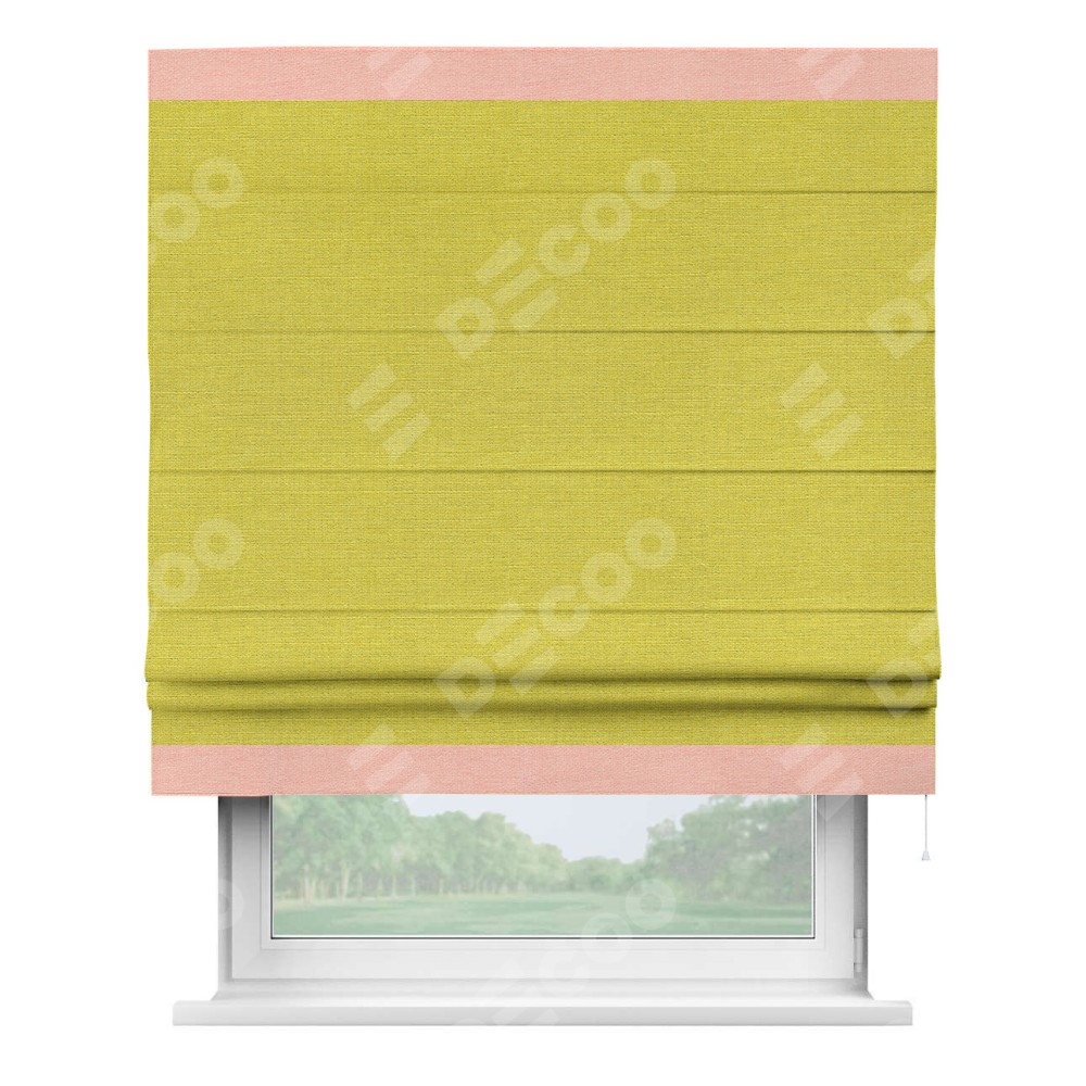 Римская штора «Кортин» с кантом Горизонт, для проема, ткань лён салатовый