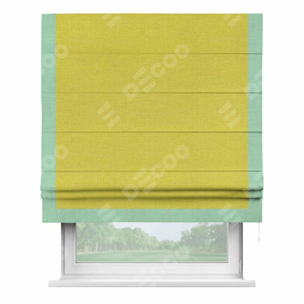 Римская штора «Кортин» с кантом Виктория, для проема, ткань лён салатовый