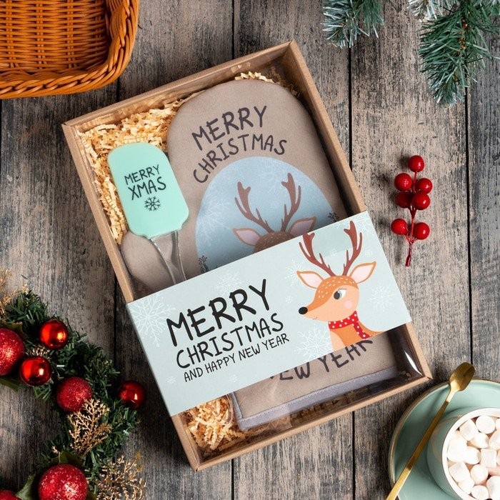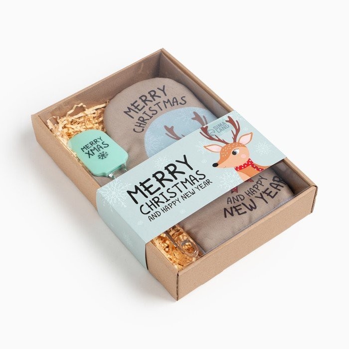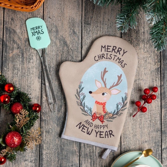 Набор подарочный Доляна Merry Xmas: варежка-прихватка, лопатка силикон