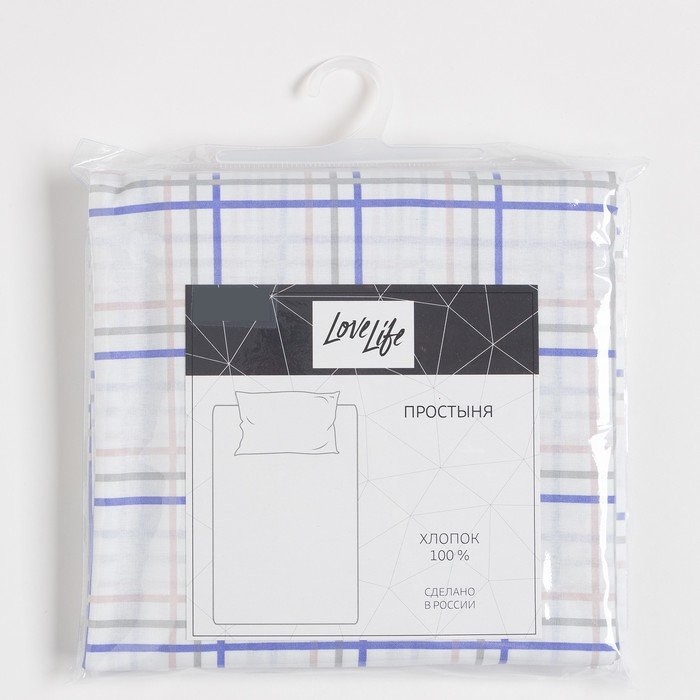Простыня LoveLife «Клетка» 200×220 см, 100% хлопок, поплин, 125 г/м²