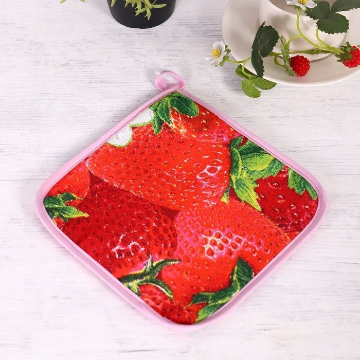 Прихватка 18×18 см, Клубника, рогожка, 100% хлопок