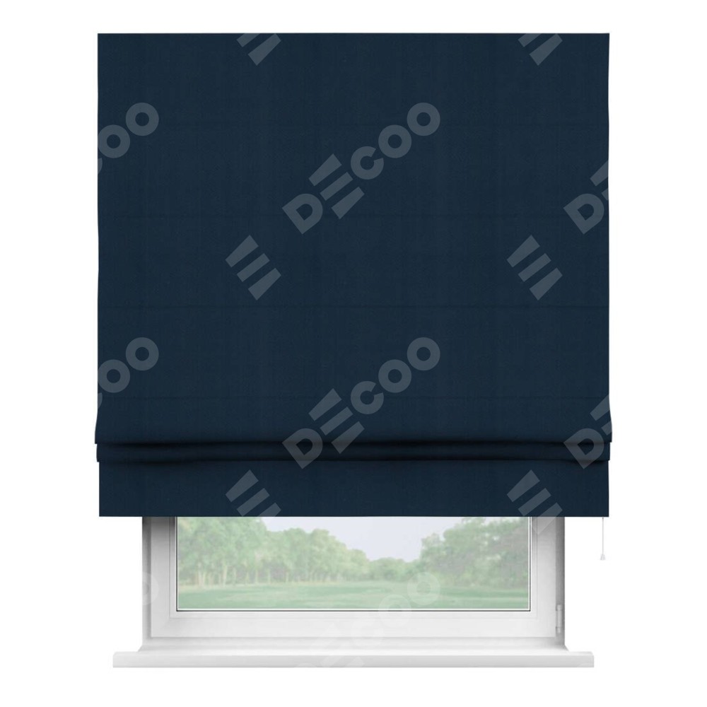 Римская штора производителя «Cortin», используется для проёма, пошита из ткани блэкаут однотонный синий, артикул ткани 29327. Имеет универсальный механизм и подходит для монтажа: на потолок, на стену и в нишу.