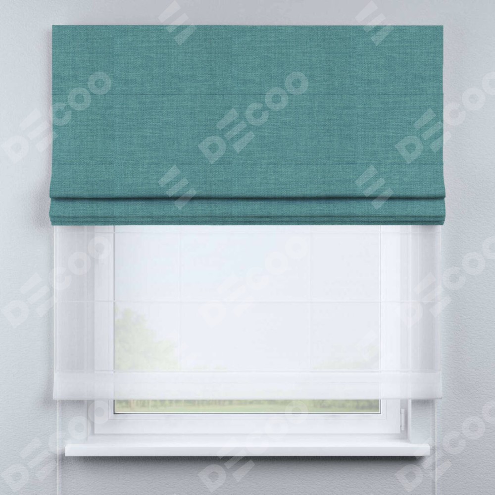 Римская штора «Кортин» день-ночь, ткань лён бирюза