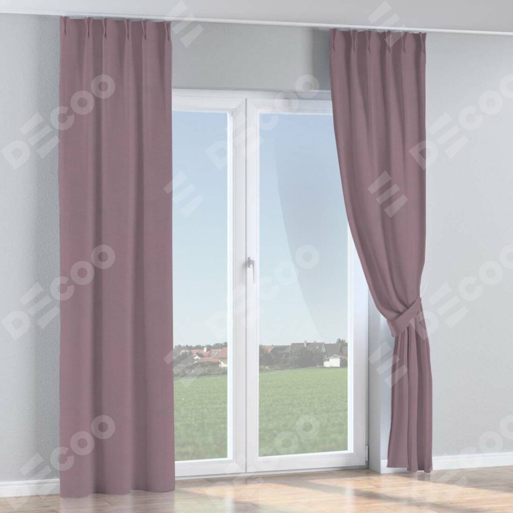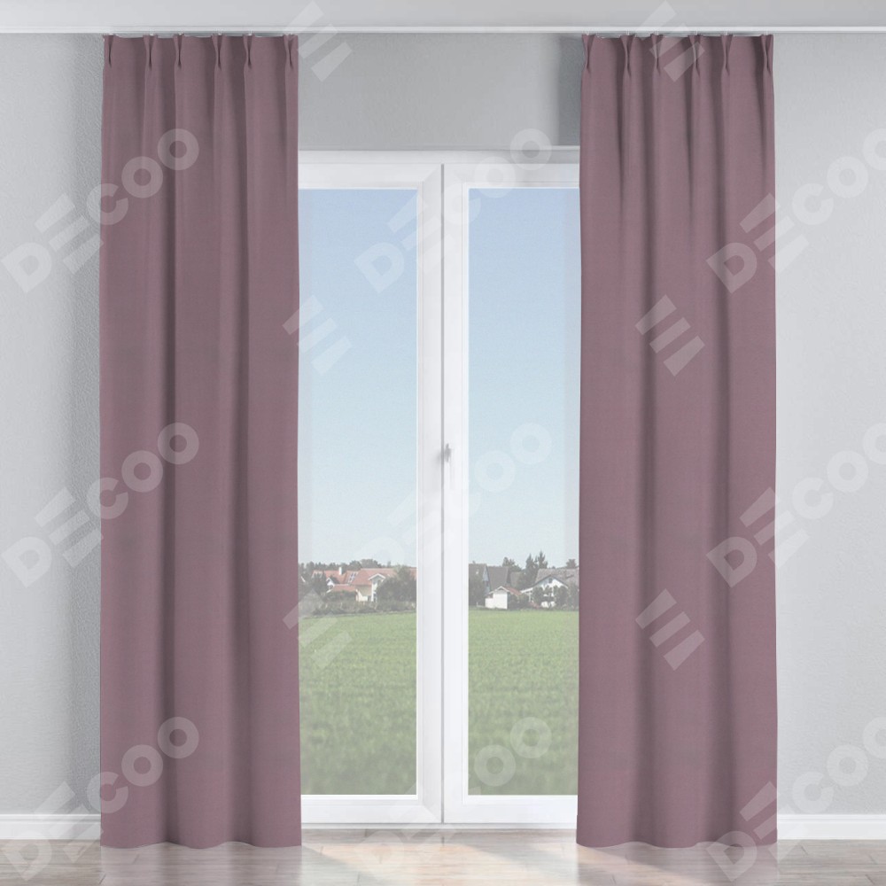 Комплект прямых штор, от производителя «Cortin», пошиты из ткани блэкаут однотонный брусника, артикул ткани 88302. С изнаночной стороны в верхней части штор пристрачивается шторная лента с декоративными складками «Кустик». Для создания элегантных складок прямые шторы шьются по стандарту с коэффициентом 1:2 (на 100 см. ширины проёма 200 см. ширины ткани).