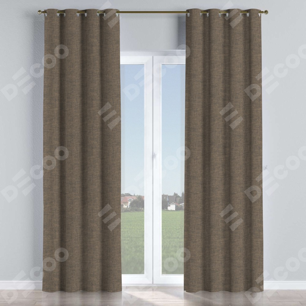 Комплект штор на люверсах рогожка димаут коричневый