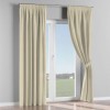 Комплект прямых штор, от производителя «Cortin», пошиты из ткани лён димаут бежевый, артикул ткани 83023. С изнаночной стороны в верхней части штор пристрачивается шторная лента с декоративными складками «Карандаш». Для создания элегантных складок прямые шторы шьются по стандарту с коэффициентом 1:2 (на 100 см. ширины проёма 200 см. ширины ткани).