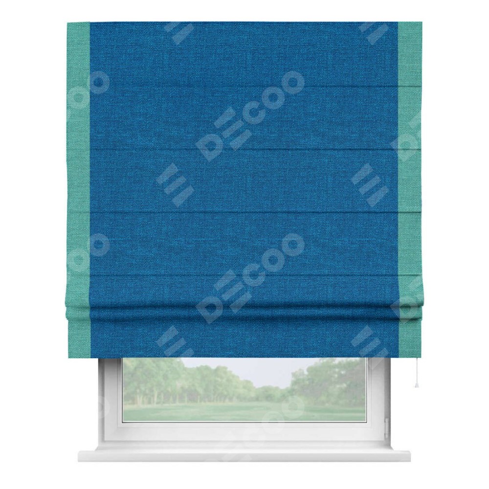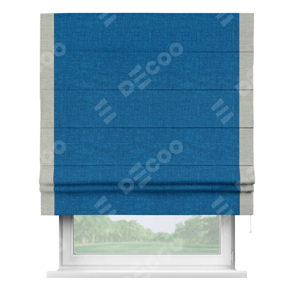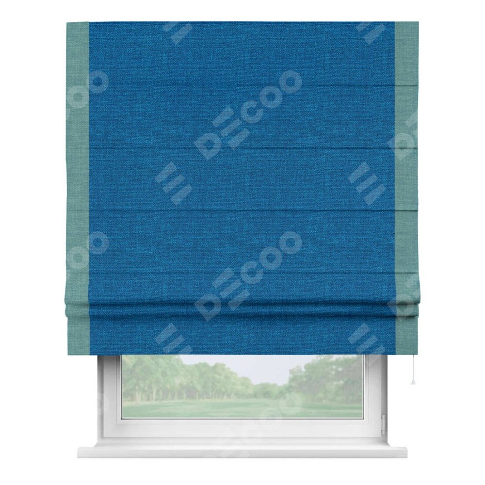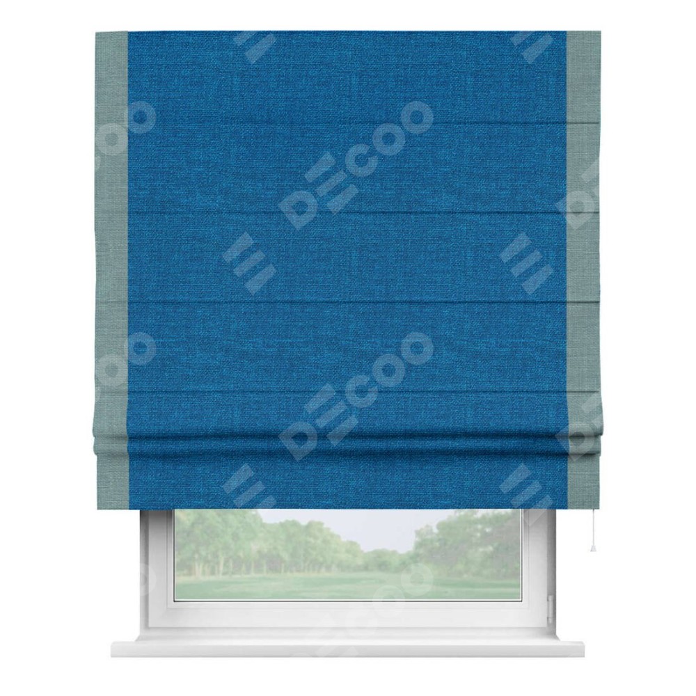 Римская штора «Кортин» с кантом Стрим Дуо, для проема, ткань лён синий