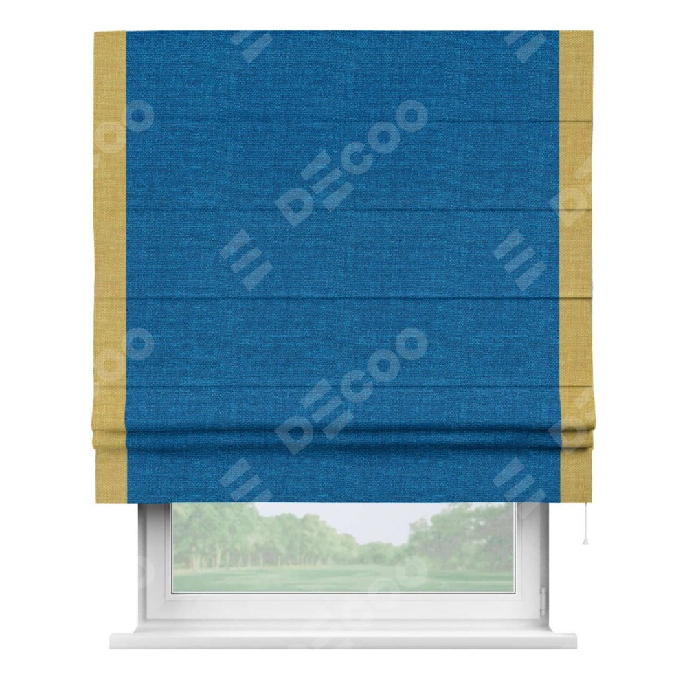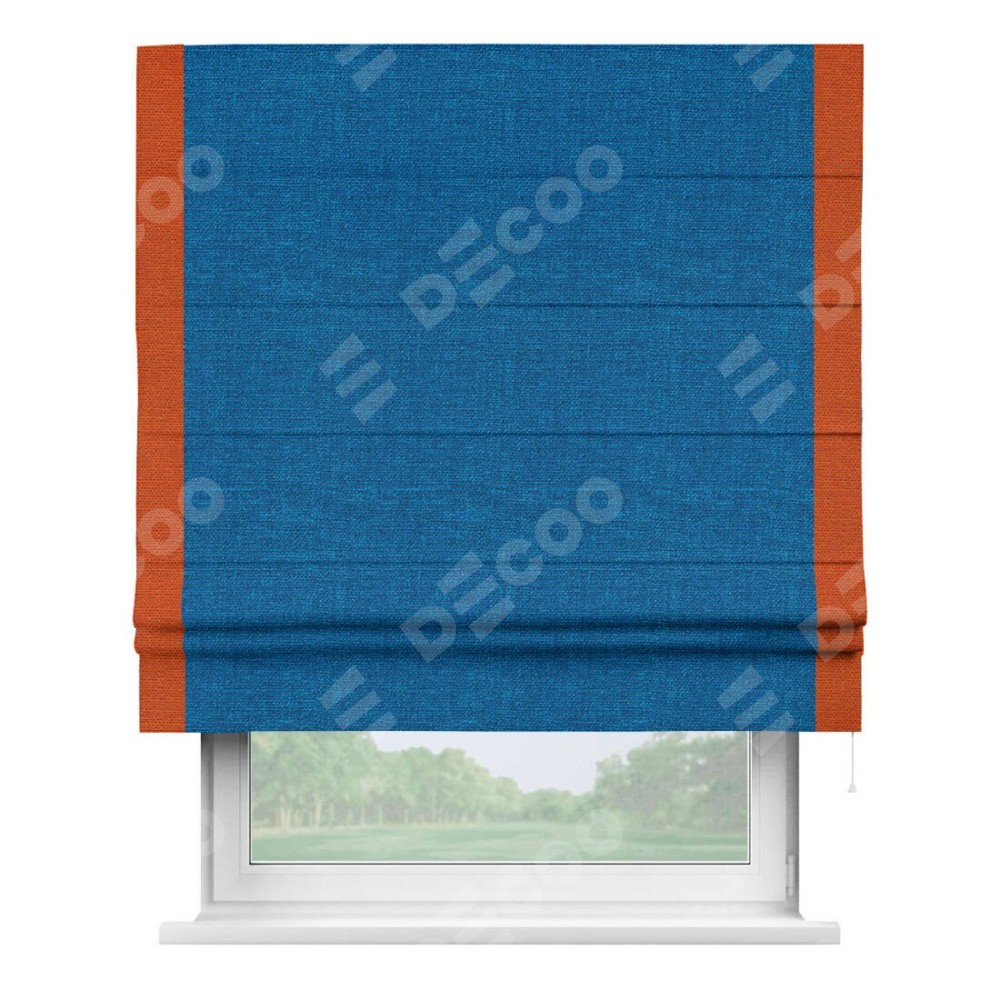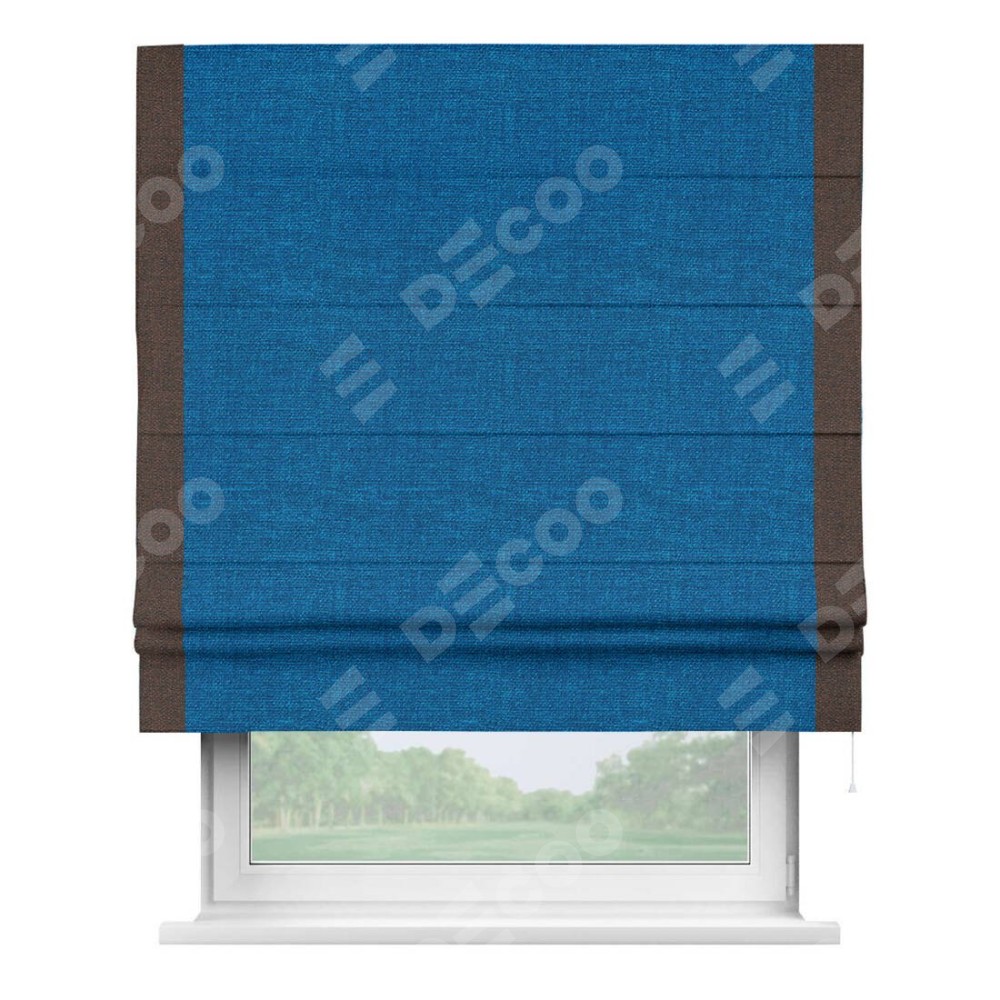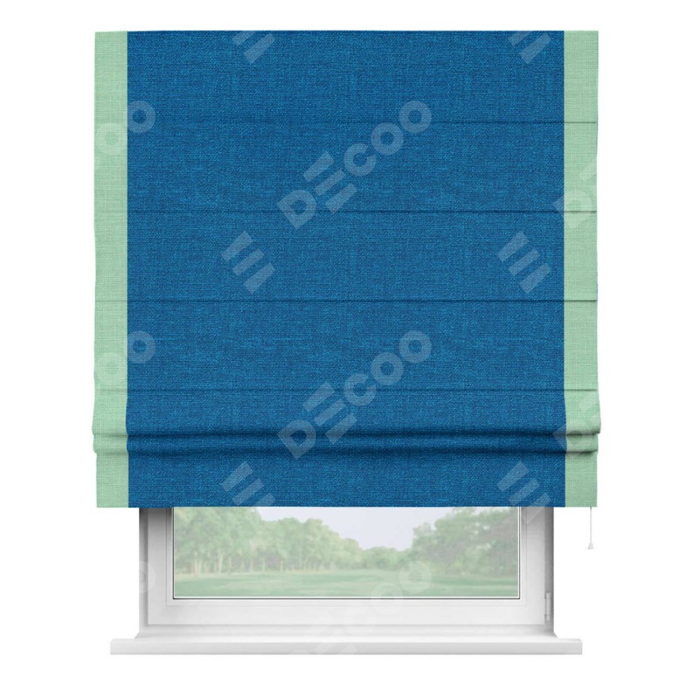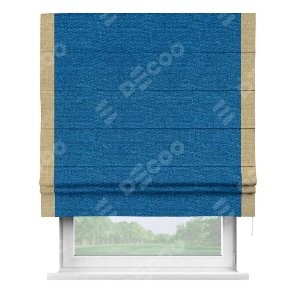Римская штора «Кортин» с кантом Стрим Дуо, для проема, ткань лён синий