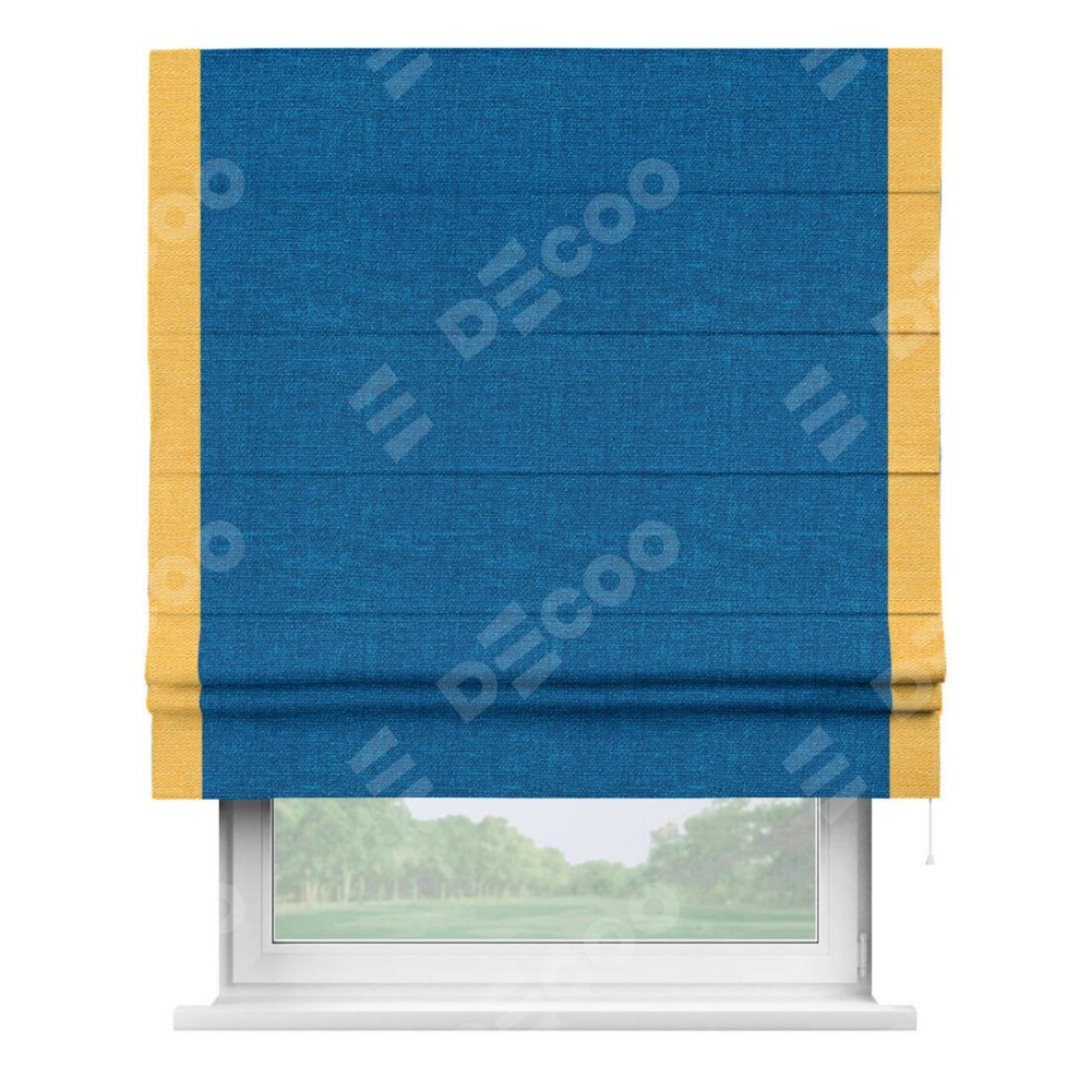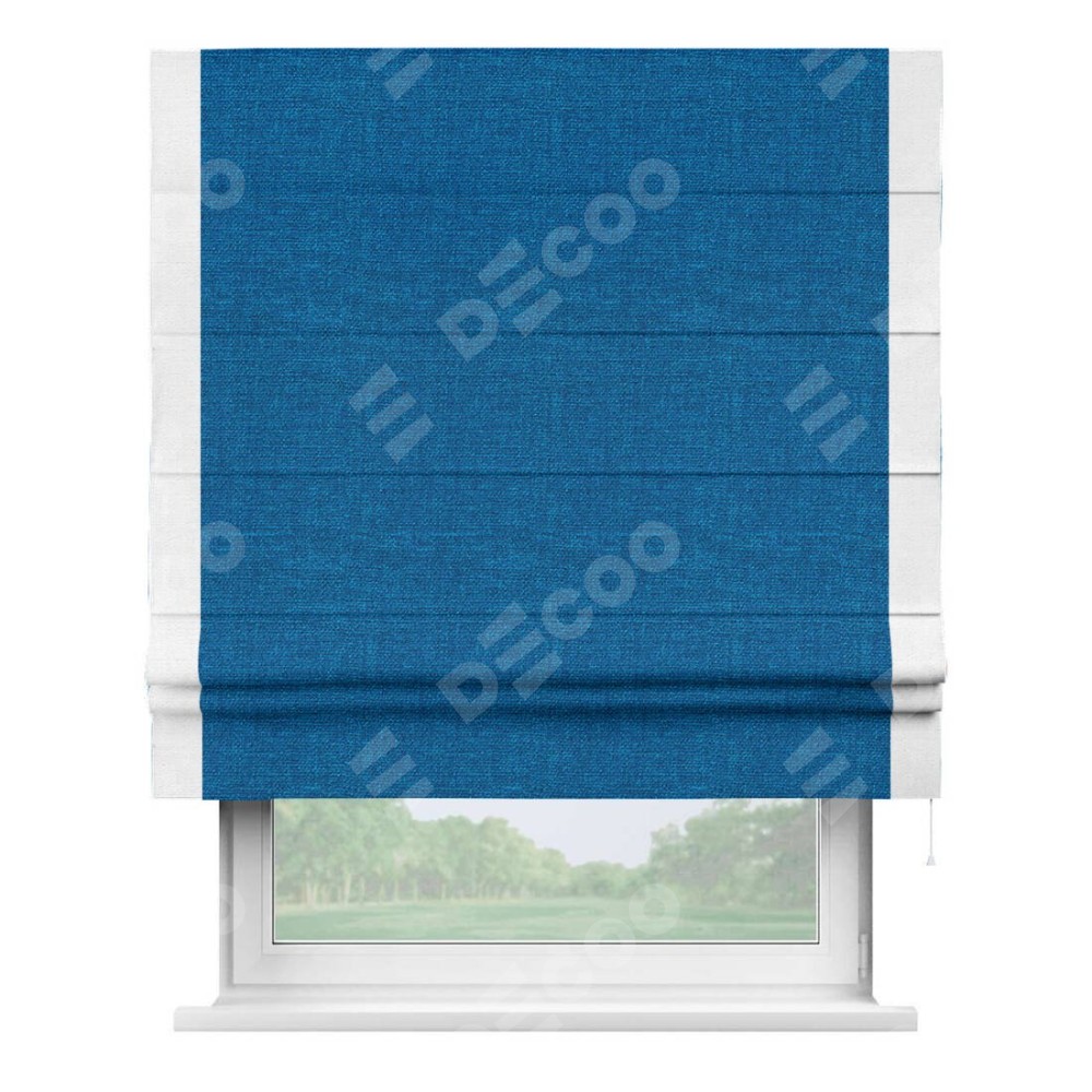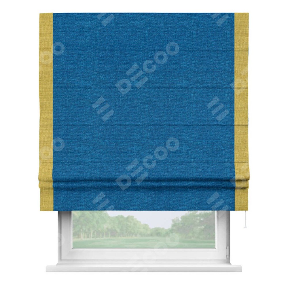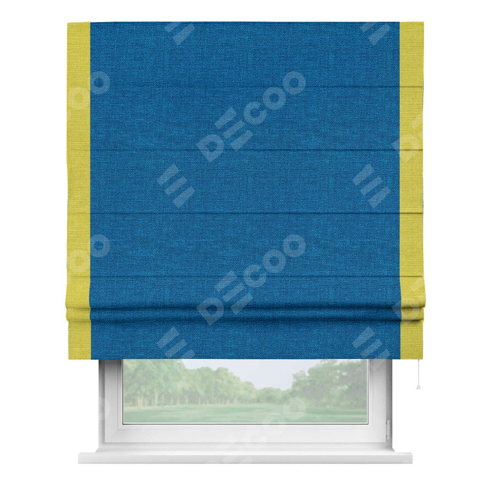 Римская штора «Кортин» с кантом Стрим Дуо, для проема, ткань лён синий