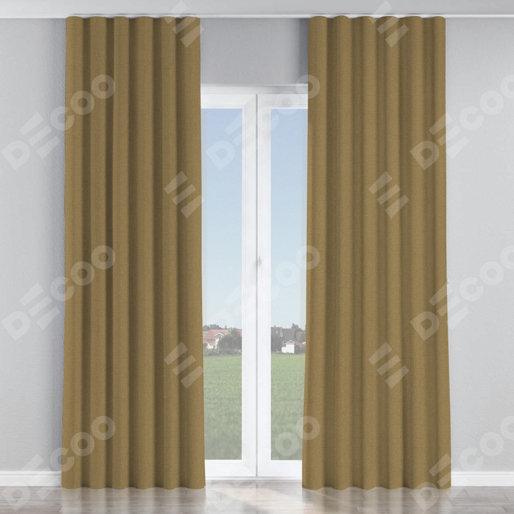 Комплект прямых штор, от производителя «Cortin», пошиты из ткани лён димаут оливковый, артикул ткани 16243. С изнаночной стороны в верхней части штор пристрачивается шторная лента с декоративными складками «Волна». Для создания элегантных складок прямые шторы шьются по стандарту с коэффициентом 1:2 (на 100 см. ширины проёма 200 см. ширины ткани).