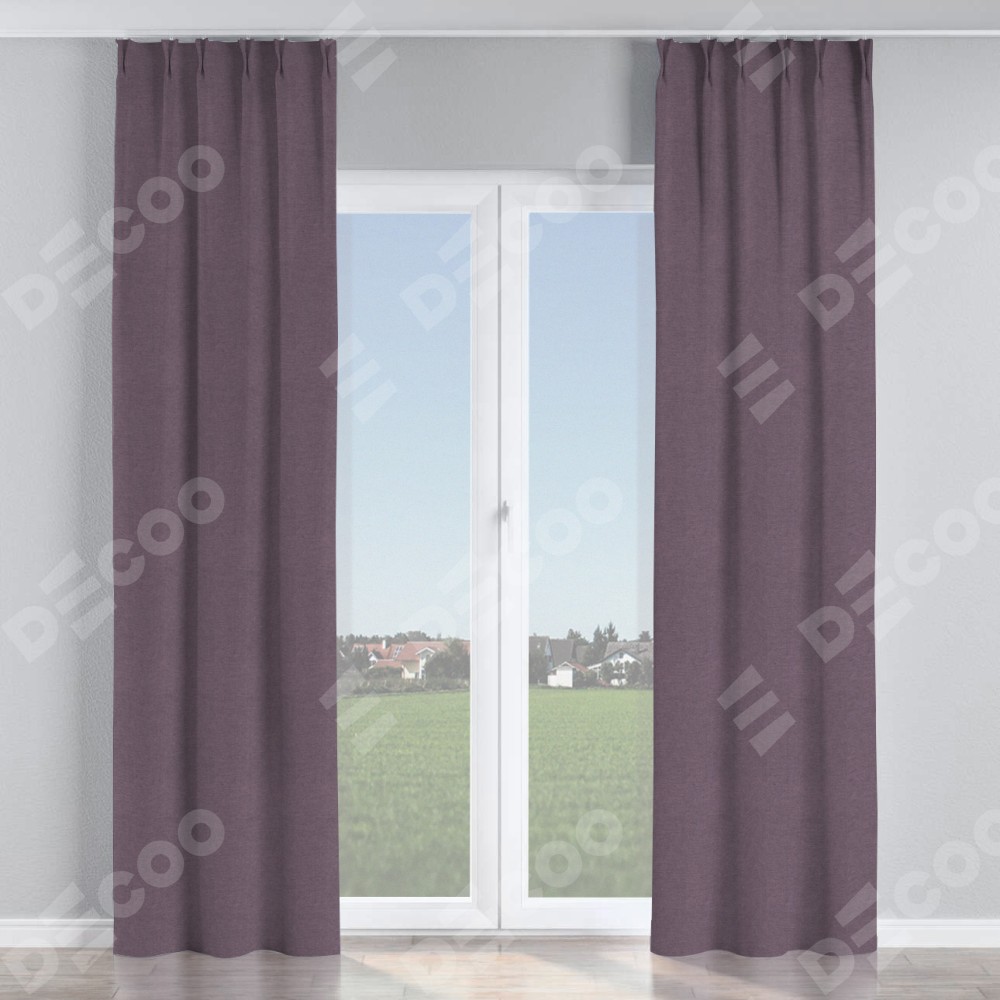 Комплект прямых штор, от производителя «Cortin», пошиты из ткани лён димаут светло-фиолетовый, артикул ткани 83034. С изнаночной стороны в верхней части штор пристрачивается шторная лента с декоративными складками «Кустик». Для создания элегантных складок прямые шторы шьются по стандарту с коэффициентом 1:2 (на 100 см. ширины проёма 200 см. ширины ткани).