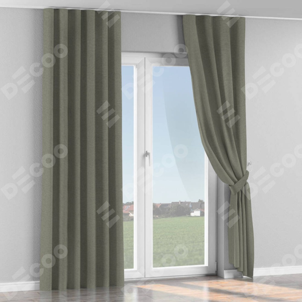 Комплект прямых штор, от производителя «Cortin», пошиты из ткани лён димаут стальной, артикул ткани 25. С изнаночной стороны в верхней части штор пристрачивается шторная лента с декоративными складками «Волна». Для создания элегантных складок прямые шторы шьются по стандарту с коэффициентом 1:2 (на 100 см. ширины проёма 200 см. ширины ткани).