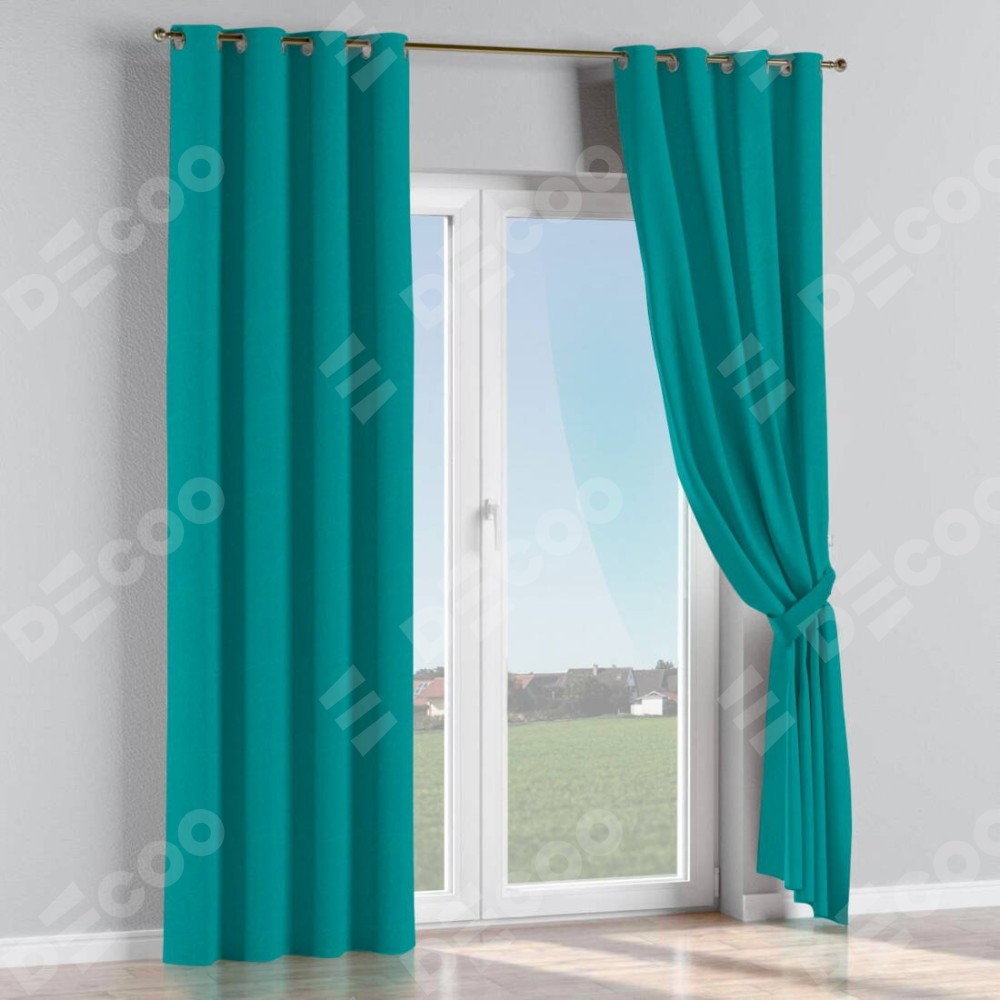 Комплект прямых штор, от производителя «Cortin», пошиты из ткани лён димаут тёмно-бирюзовый, артикул ткани 318. Данная модель пошита на люверсах, комплектуется на выбор круглым карнизом и подходит для монтажа на стену или потолок. Прямые шторы на люверсах шьются по стандарту с коэффициентом 1/2 (на 100 см. ширины проёма 200 см. ширины ткани), отличительным преимуществом данной модели является простой способ монтажа. Достаточно повесить ее на трубу и штора готова!