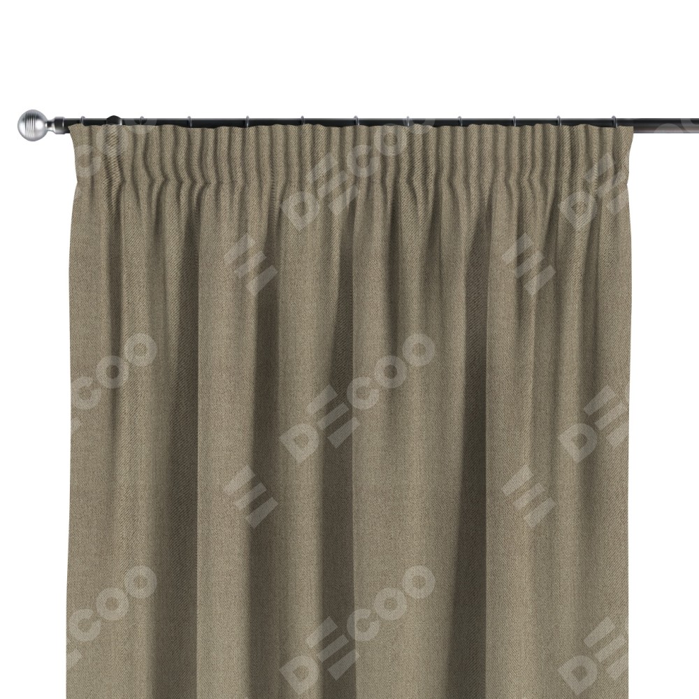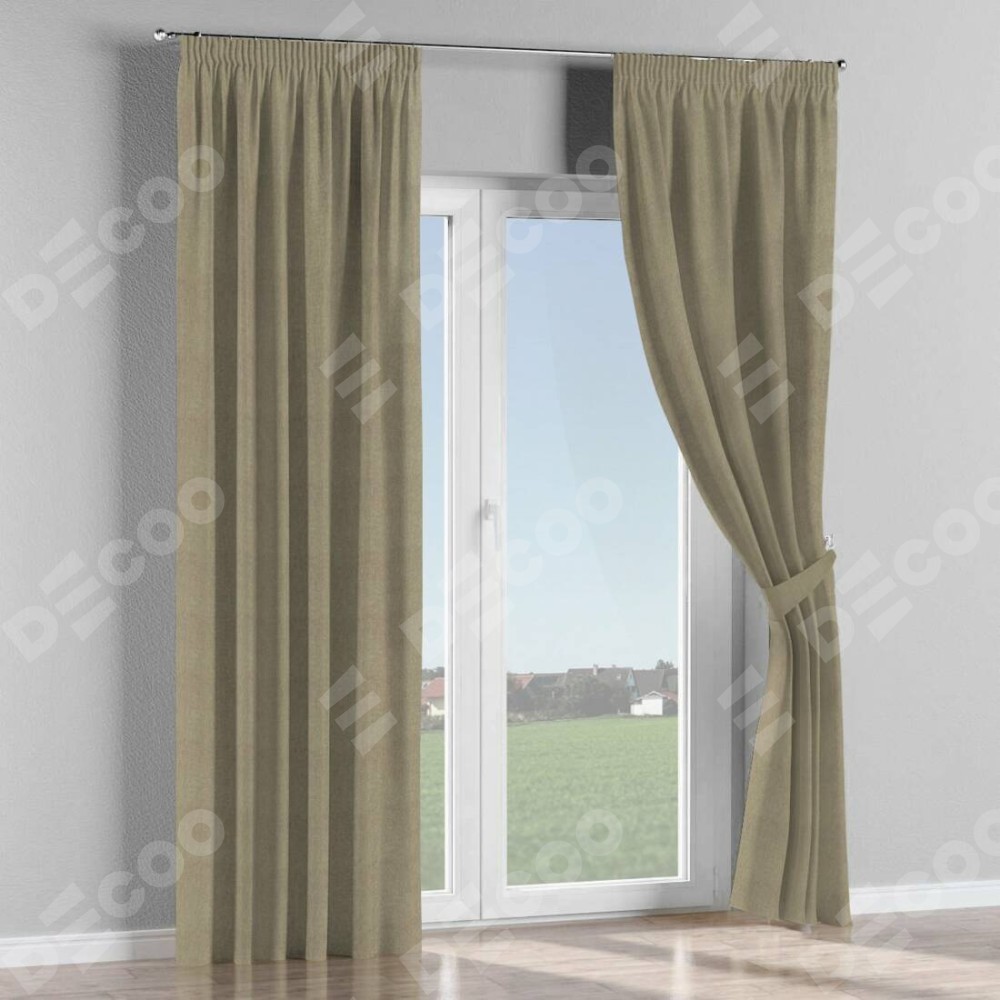 Комплект прямых штор, от производителя «Cortin», пошиты из ткани твид блэкаут кофе, артикул ткани 21575. С изнаночной стороны в верхней части штор пристрачивается шторная лента с декоративными складками «Карандаш». Для создания элегантных складок прямые шторы шьются по стандарту с коэффициентом 1:2 (на 100 см. ширины проёма 200 см. ширины ткани).