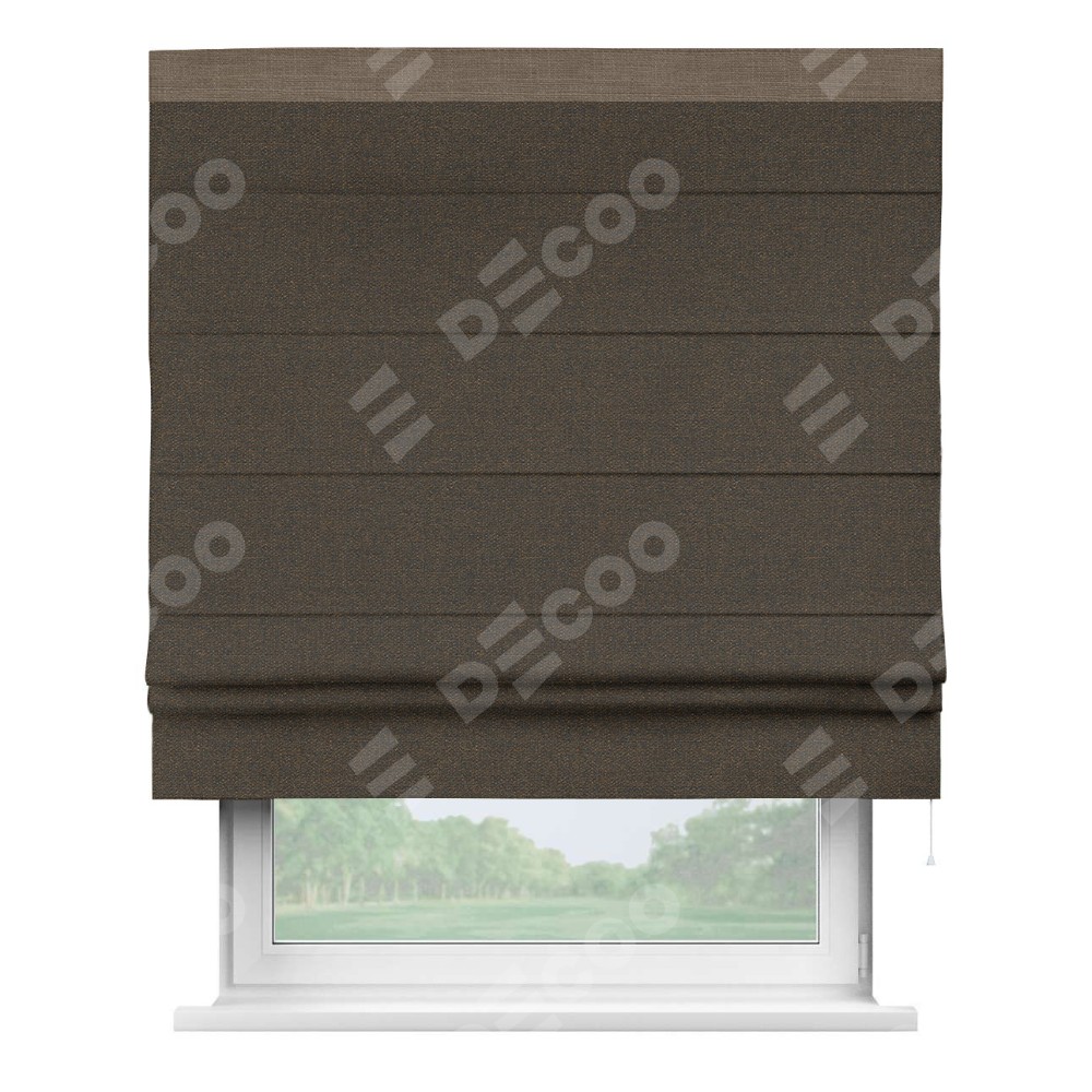 Римская штора «Кортин» с кантом Кинг, для проема, ткань лён темно-коричневый