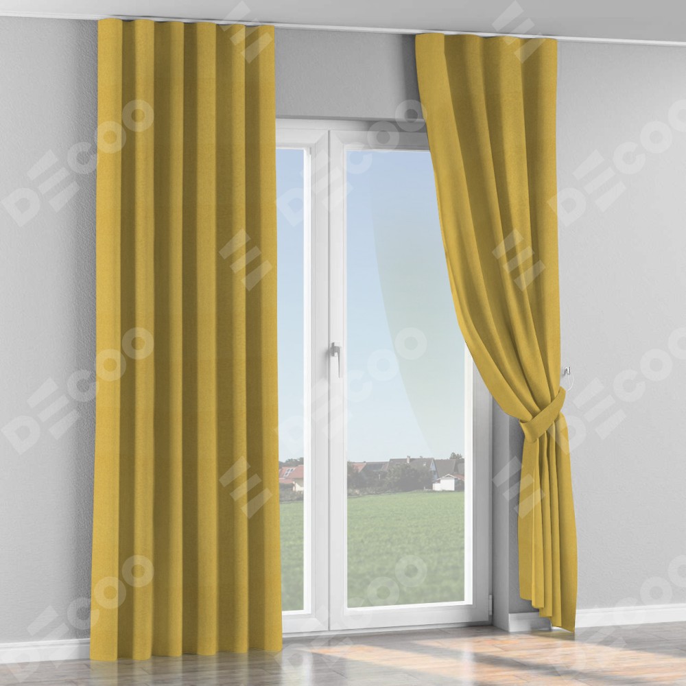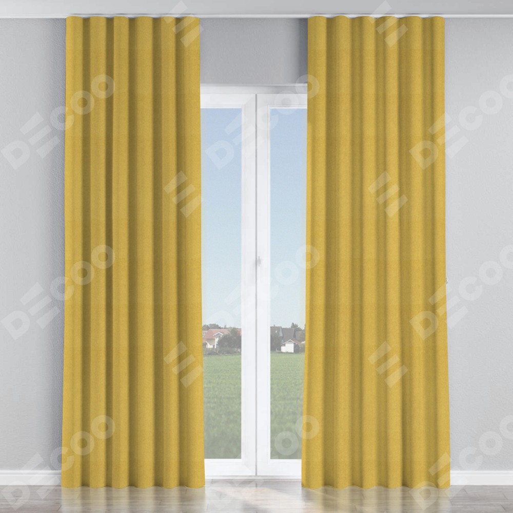 Комплект прямых штор, от производителя «Cortin», пошиты из ткани твид блэкаут пыльная горчица, артикул ткани 21588. С изнаночной стороны в верхней части штор пристрачивается шторная лента с декоративными складками «Волна». Для создания элегантных складок прямые шторы шьются по стандарту с коэффициентом 1:2 (на 100 см. ширины проёма 200 см. ширины ткани).