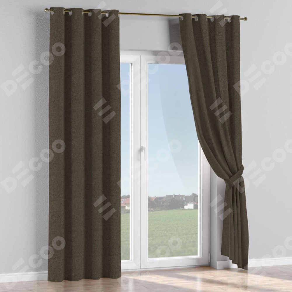 Комплект штор на люверсах твид блэкаут тёмно-коричневый