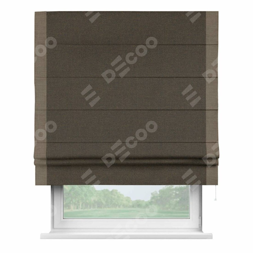 Римская штора «Кортин» с кантом Стрим Дуо, для проема, ткань лён темно-коричневый