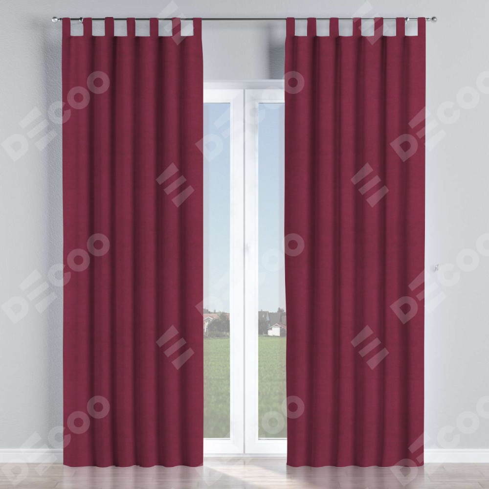 Комплект прямых штор, от производителя «Cortin», пошиты из ткани вельвет бордовый, артикул ткани 85553. Данная модель пошита на петлях, комплектуется на выбор круглым карнизом и подходит для монтажа на стену или потолок. Прямые шторы на петлях шьются по стандарту с коэффициентом 1/2 (на 100 см. ширины проёма 200 см. ширины ткани), отличительным преимуществом данной модели является простой способ монтажа. Достаточно повесить ее на трубу и штора готова!