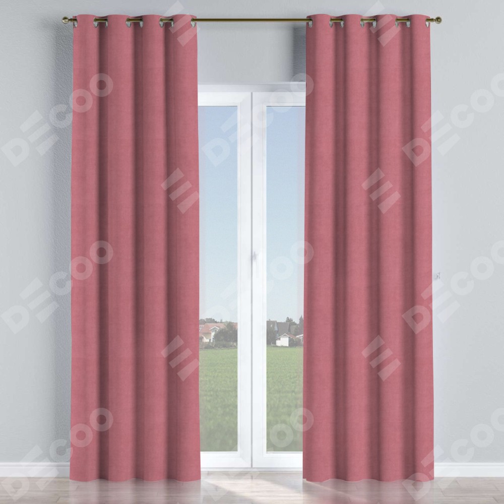 Комплект прямых штор, от производителя «Cortin», пошиты из ткани вельвет брусника, артикул ткани 85550. Данная модель пошита на люверсах, комплектуется на выбор круглым карнизом и подходит для монтажа на стену или потолок. Прямые шторы на люверсах шьются по стандарту с коэффициентом 1/2 (на 100 см. ширины проёма 200 см. ширины ткани), отличительным преимуществом данной модели является простой способ монтажа. Достаточно повесить ее на трубу и штора готова!