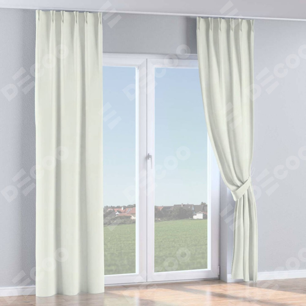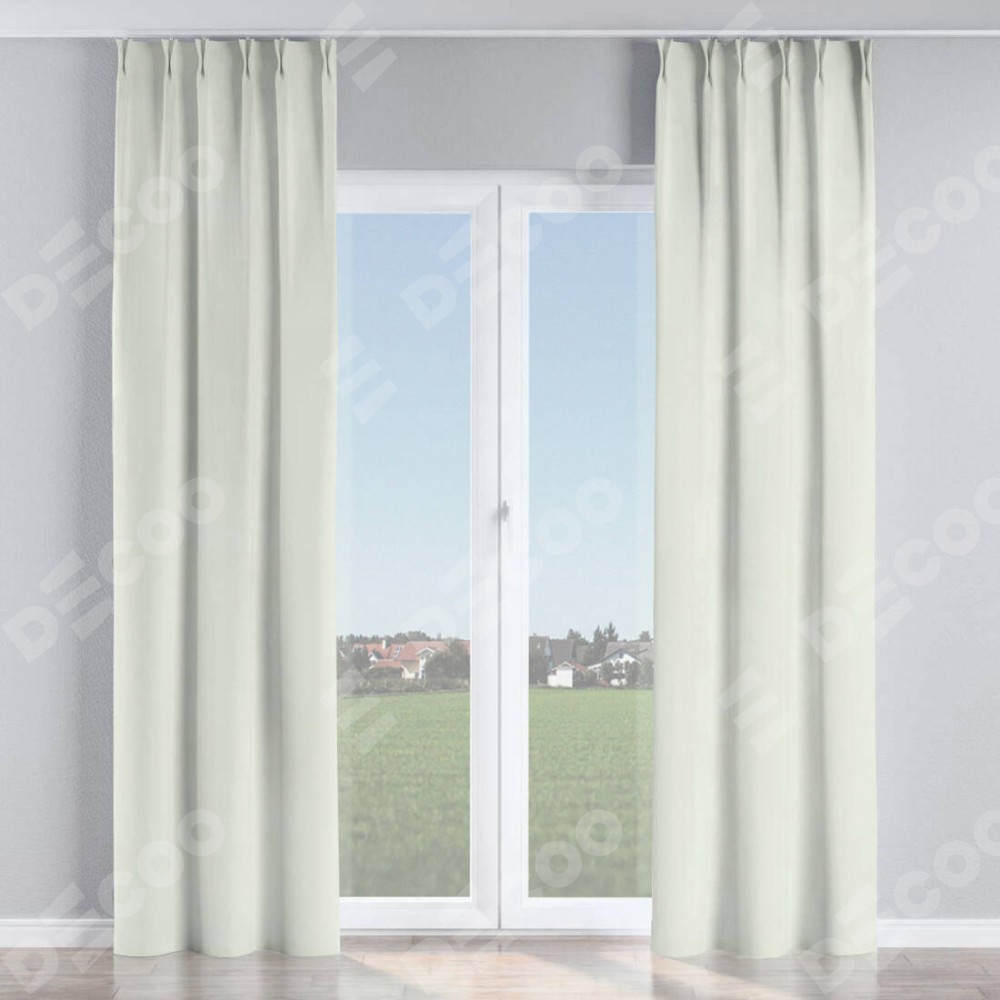 Комплект прямых штор, от производителя «Cortin», пошиты из ткани вельвет кремовый, артикул ткани 85524. С изнаночной стороны в верхней части штор пристрачивается шторная лента с декоративными складками «Кустик». Для создания элегантных складок прямые шторы шьются по стандарту с коэффициентом 1:2 (на 100 см. ширины проёма 200 см. ширины ткани).