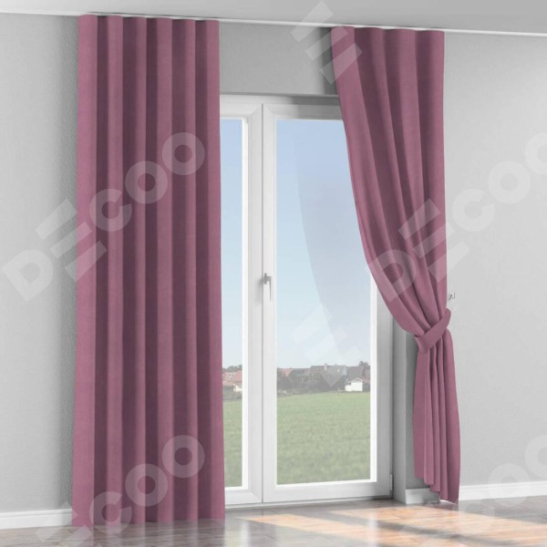 Комплект прямых штор, от производителя «Cortin», пошиты из ткани вельвет лиловый, артикул ткани 17752. С изнаночной стороны в верхней части штор пристрачивается шторная лента с декоративными складками «Волна». Для создания элегантных складок прямые шторы шьются по стандарту с коэффициентом 1:2 (на 100 см. ширины проёма 200 см. ширины ткани).