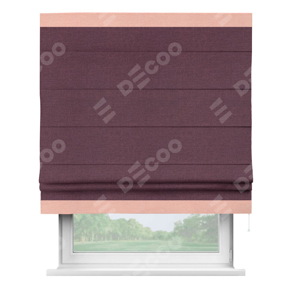 Римская штора «Кортин» с кантом Горизонт, для проема, ткань лён фиолетовый