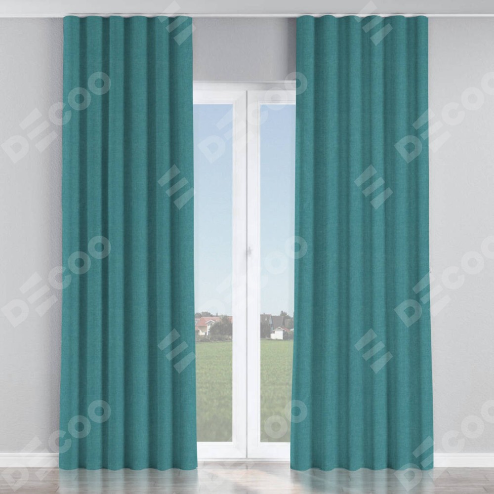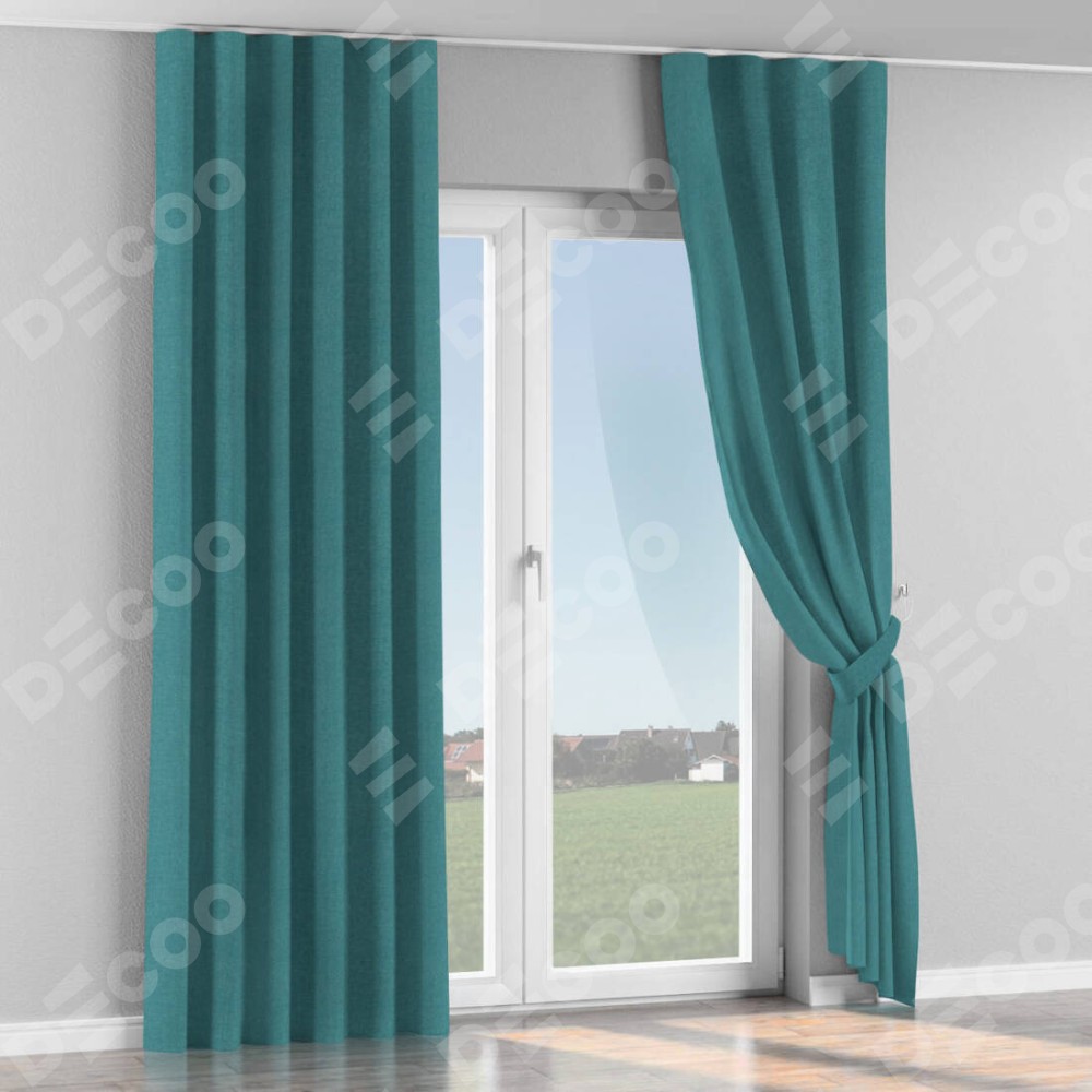Комплект прямых штор, от производителя «Cortin», пошиты из ткани лён бирюзовый, артикул ткани 53436. С изнаночной стороны в верхней части штор пристрачивается шторная лента с декоративными складками «Волна». Для создания элегантных складок прямые шторы шьются по стандарту с коэффициентом 1:2 (на 100 см. ширины проёма 200 см. ширины ткани).