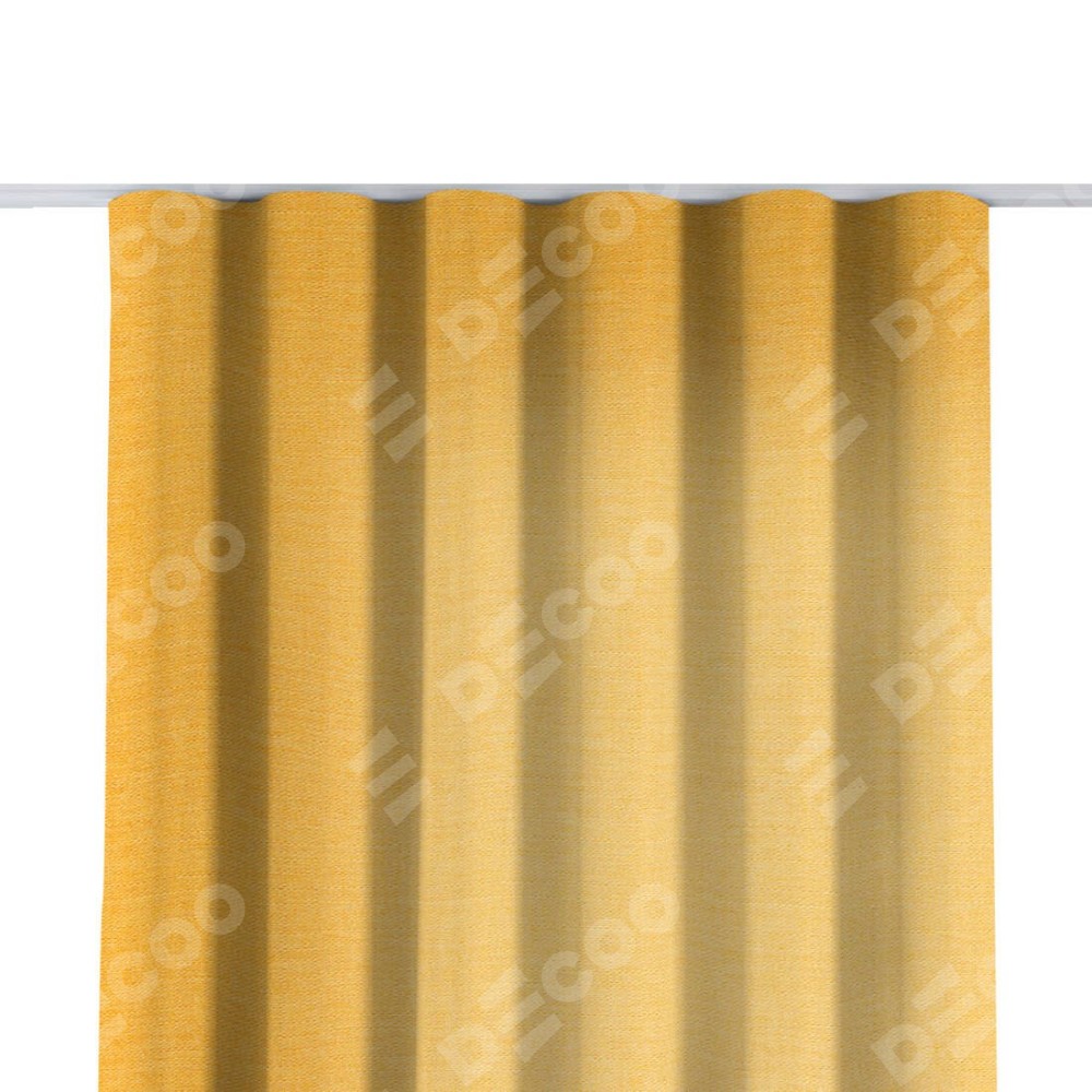 Комплект прямых штор, от производителя «Cortin», пошиты из ткани лён желтый, артикул ткани 63738. С изнаночной стороны в верхней части штор пристрачивается шторная лента с декоративными складками «Волна». Для создания элегантных складок прямые шторы шьются по стандарту с коэффициентом 1:2 (на 100 см. ширины проёма 200 см. ширины ткани).