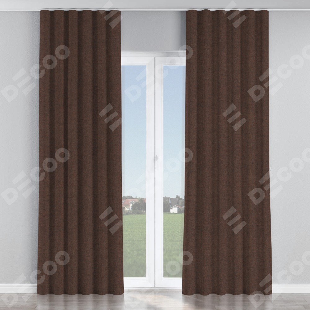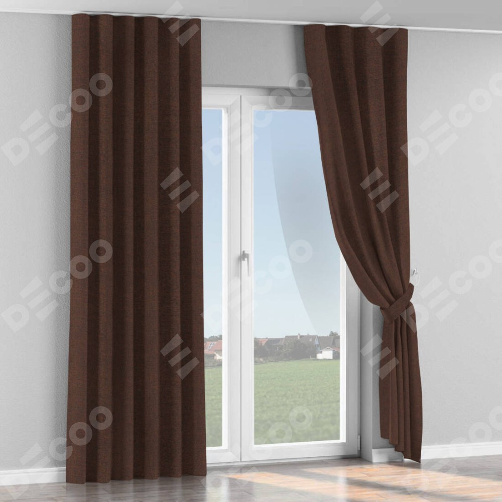 Комплект прямых штор, от производителя «Cortin», пошиты из ткани лён коричневый, артикул ткани 53443. С изнаночной стороны в верхней части штор пристрачивается шторная лента с декоративными складками «Волна». Для создания элегантных складок прямые шторы шьются по стандарту с коэффициентом 1:2 (на 100 см. ширины проёма 200 см. ширины ткани).