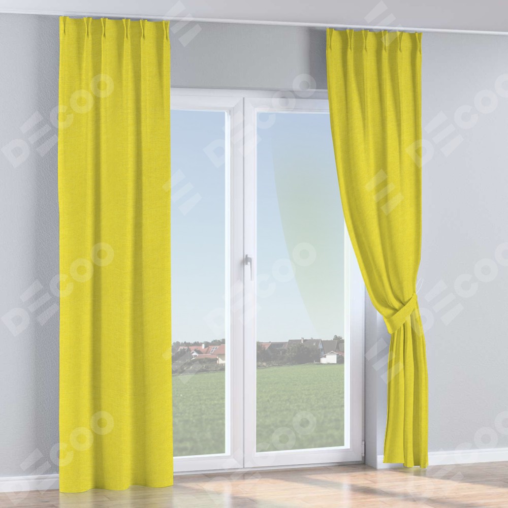 Комплект прямых штор, от производителя «Cortin», пошиты из ткани лён салатовый, артикул ткани 53437. С изнаночной стороны в верхней части штор пристрачивается шторная лента с декоративными складками «Кустик». Для создания элегантных складок прямые шторы шьются по стандарту с коэффициентом 1:2 (на 100 см. ширины проёма 200 см. ширины ткани).