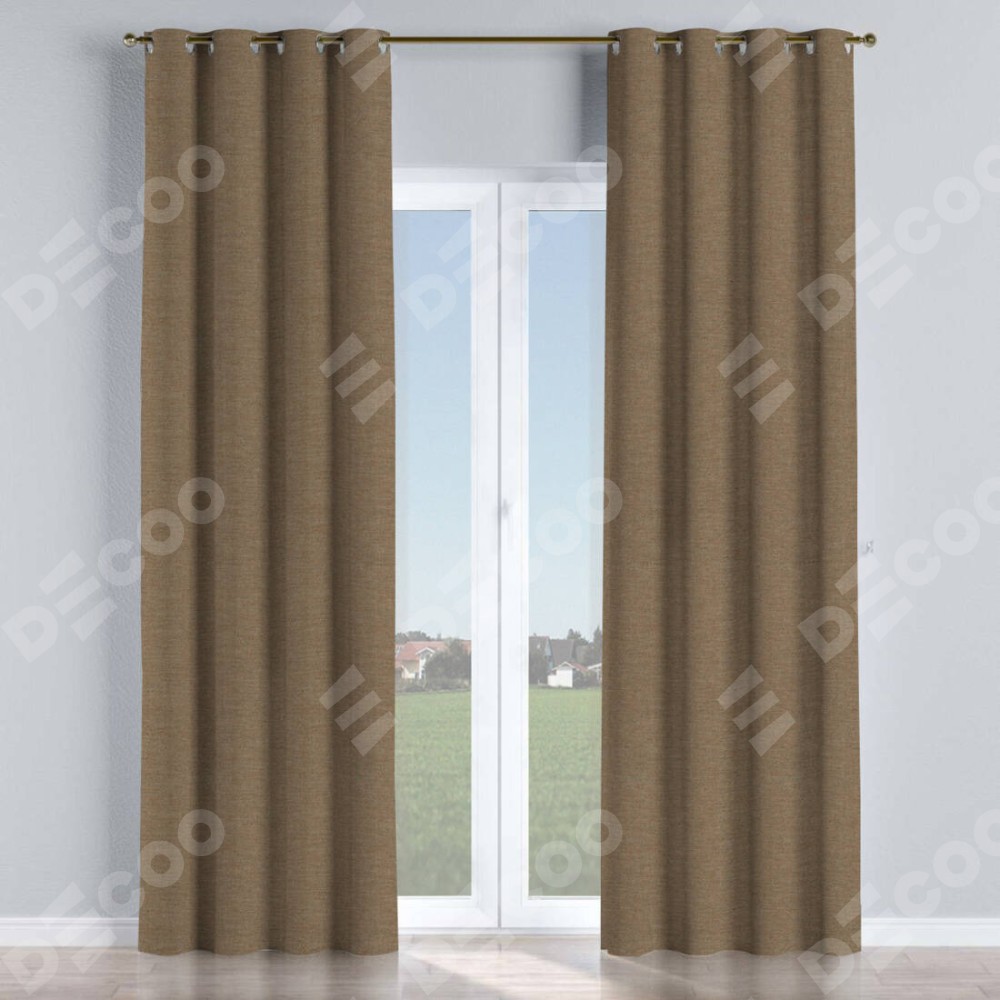 Комплект прямых штор, от производителя «Cortin», пошиты из ткани лён светло-коричневый, артикул ткани 53434. Данная модель пошита на люверсах, комплектуется на выбор круглым карнизом и подходит для монтажа на стену или потолок. Прямые шторы на люверсах шьются по стандарту с коэффициентом 1/2 (на 100 см. ширины проёма 200 см. ширины ткани), отличительным преимуществом данной модели является простой способ монтажа. Достаточно повесить ее на трубу и штора готова!