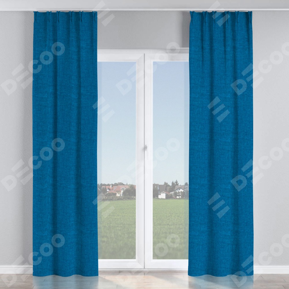 Комплект прямых штор, от производителя «Cortin», пошиты из ткани лён синий, артикул ткани 63742. С изнаночной стороны в верхней части штор пристрачивается шторная лента с декоративными складками «Кустик». Для создания элегантных складок прямые шторы шьются по стандарту с коэффициентом 1:2 (на 100 см. ширины проёма 200 см. ширины ткани).