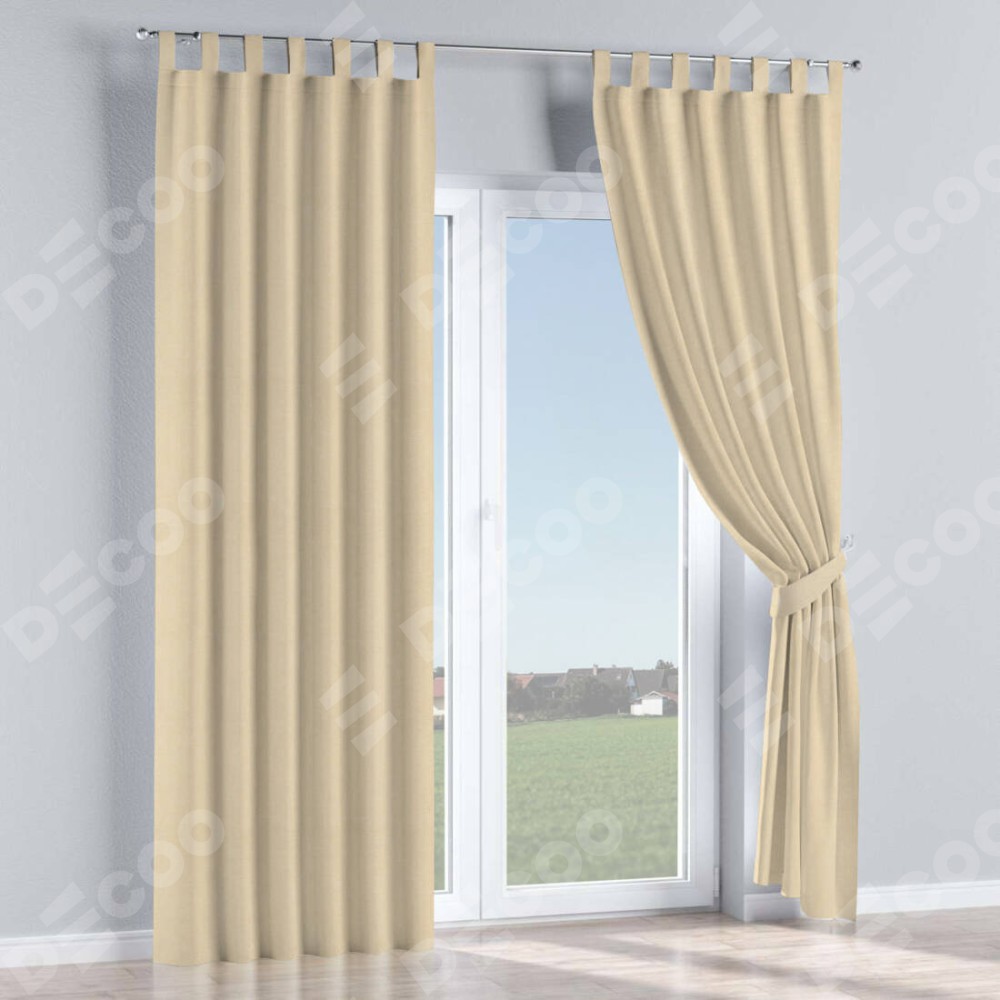 Комплект прямых штор, от производителя «Cortin», пошиты из ткани софт однотонный бежевый лайт, артикул ткани 33 100. Данная модель пошита на петлях, комплектуется на выбор круглым карнизом и подходит для монтажа на стену или потолок. Прямые шторы на петлях шьются по стандарту с коэффициентом 1/2 (на 100 см. ширины проёма 200 см. ширины ткани), отличительным преимуществом данной модели является простой способ монтажа. Достаточно повесить ее на трубу и штора готова!