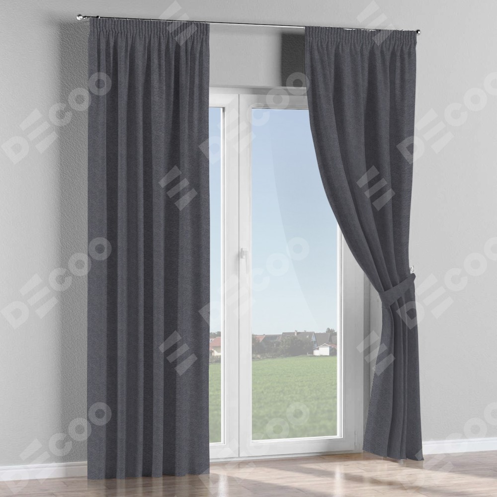 Комплект прямых штор, от производителя «Cortin», пошиты из ткани софт однотонный графит, артикул ткани 19316. С изнаночной стороны в верхней части штор пристрачивается шторная лента с декоративными складками «Карандаш». Для создания элегантных складок прямые шторы шьются по стандарту с коэффициентом 1:2 (на 100 см. ширины проёма 200 см. ширины ткани).