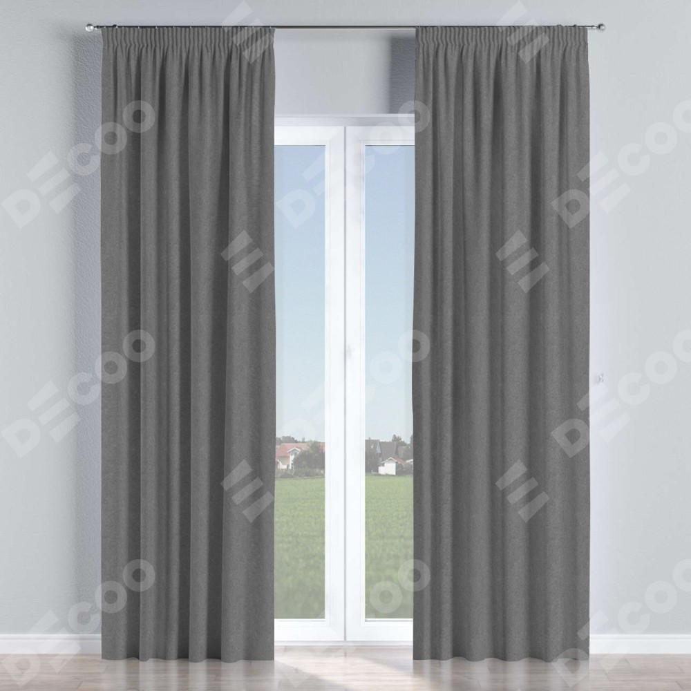 Комплект прямых штор, от производителя «Cortin», пошиты из ткани софт однотонный серый, артикул ткани 70605. С изнаночной стороны в верхней части штор пристрачивается шторная лента с декоративными складками «Карандаш». Для создания элегантных складок прямые шторы шьются по стандарту с коэффициентом 1:2 (на 100 см. ширины проёма 200 см. ширины ткани).