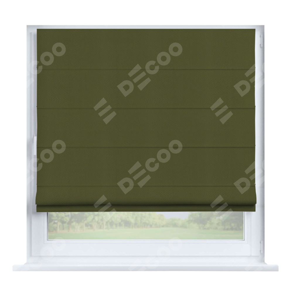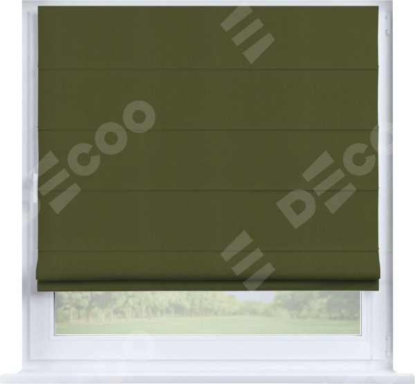 Римская штора производителя «Cortin», устанавливается на створку окна, пошита из ткани блэкаут однотонный зелёный, артикул 81859. Штора шьётся по индивидуальным размерам, для данного типа римской шторы возможная ширина от 35 до 150 см., высота до 250 см.