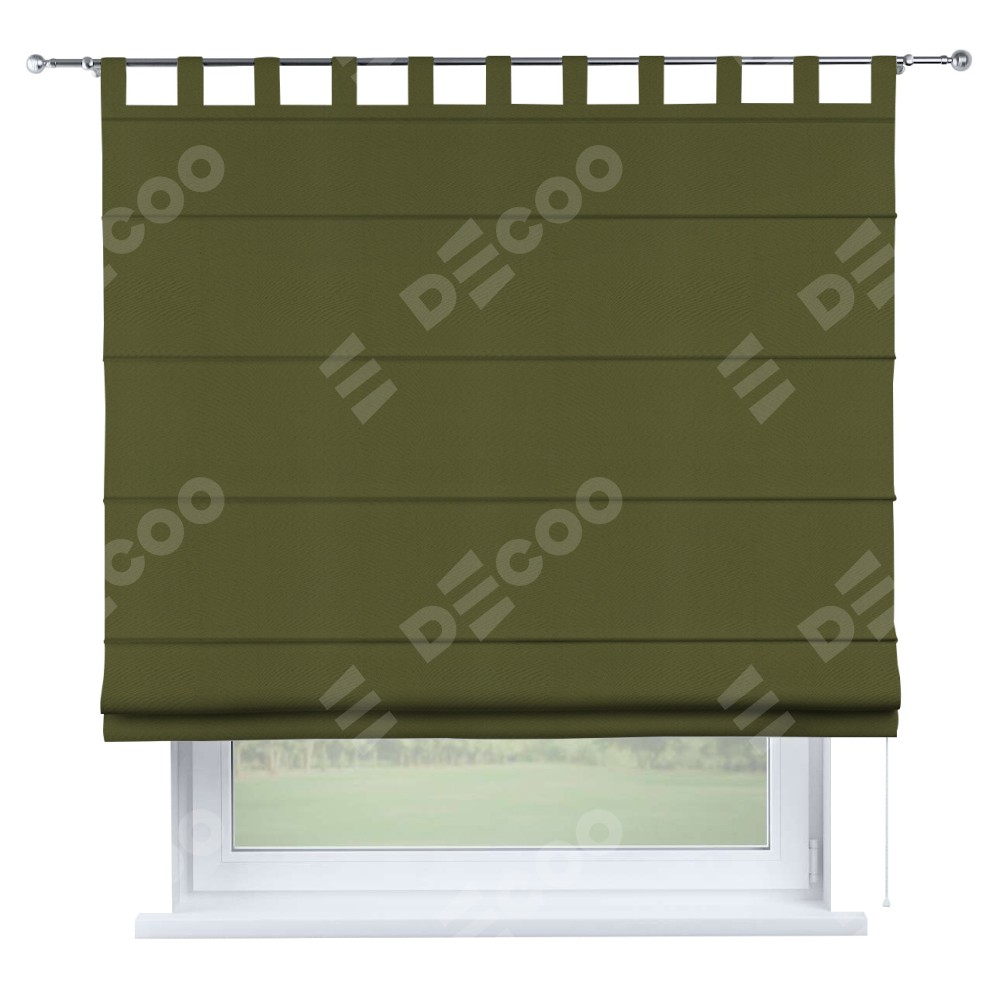 Римская штора производителя «Cortin», используется для проёма, пошита из ткани блэкаут однотонный зелёный, артикул ткани 81859. Данная модель пошита на петлях, комплектуется на выбор круглым карнизом и подходит для монтажа на стену. Римская штора на петлях имеет простую систему регулировки высоты, отличительным преимуществом данной модели является простой способ монтажа. Достаточно повесить ее на трубу и штора готова!