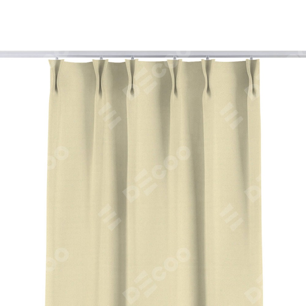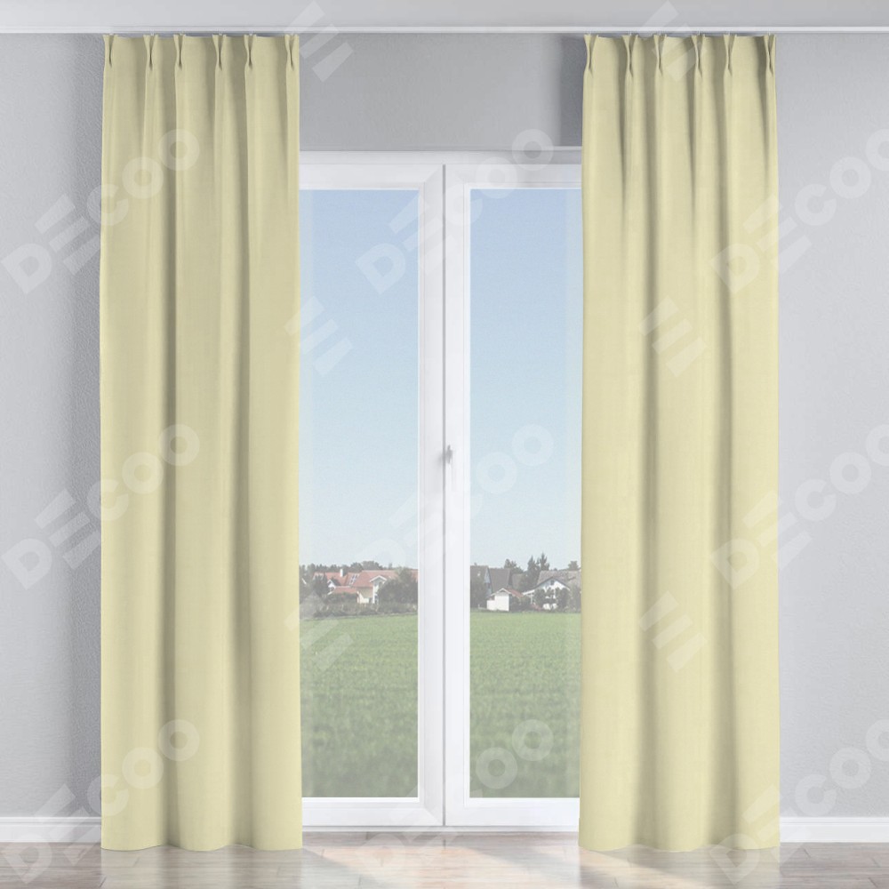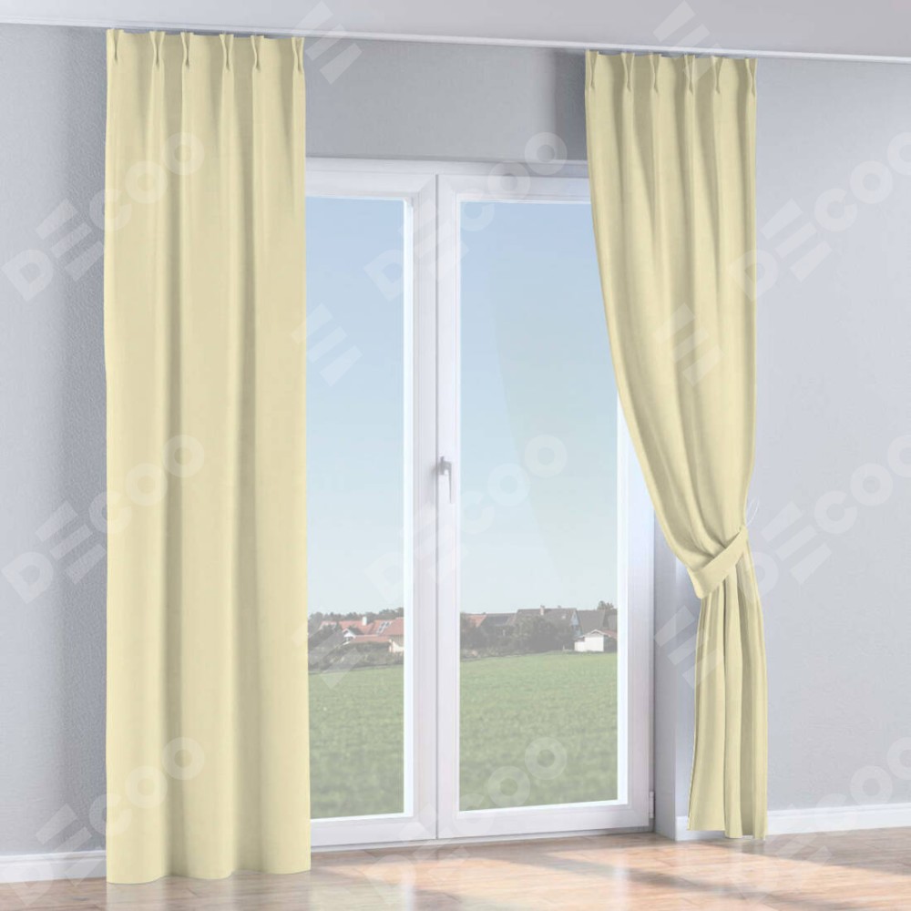 Комплект прямых штор, от производителя «Cortin», пошиты из ткани блэкаут однотонный бежевый, артикул ткани 88283. С изнаночной стороны в верхней части штор пристрачивается шторная лента с декоративными складками «Кустик». Для создания элегантных складок прямые шторы шьются по стандарту с коэффициентом 1:2 (на 100 см. ширины проёма 200 см. ширины ткани).