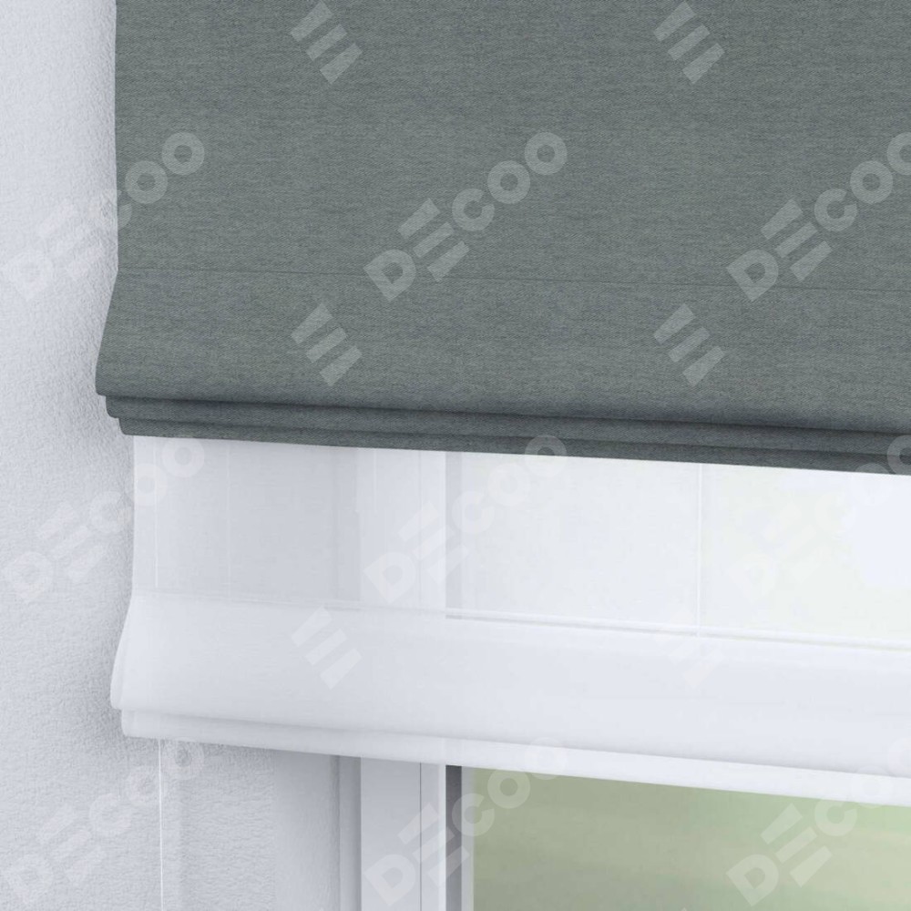 Римская штора день-ночь производителя «Cortin», используется для проёма, пошита из двух полотен, с лицевой стороны твид блэкаут серый артикул 21577, вторая ткань тюль (по стандарту комплектуется тюль белого цвета артикул V-01). Имеет универсальный механизм и подходит для монтажа: на потолок, на стену и в нишу.