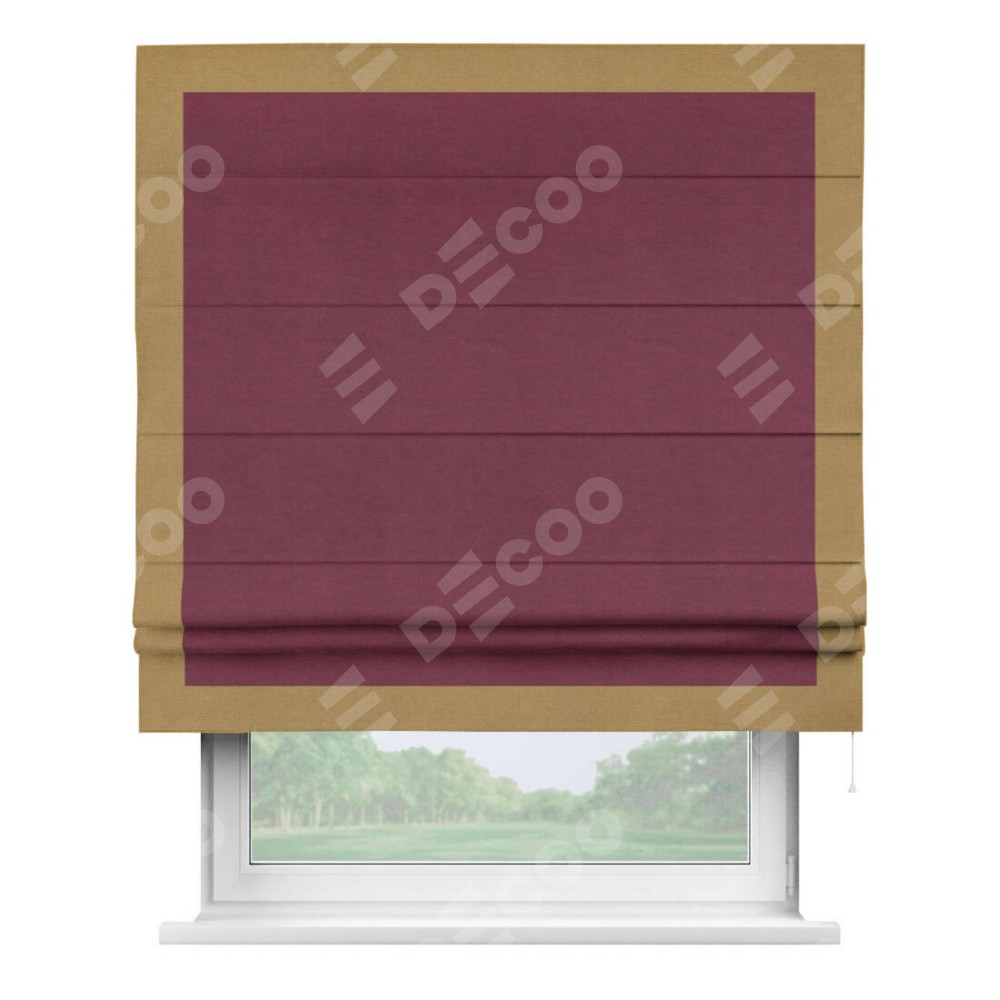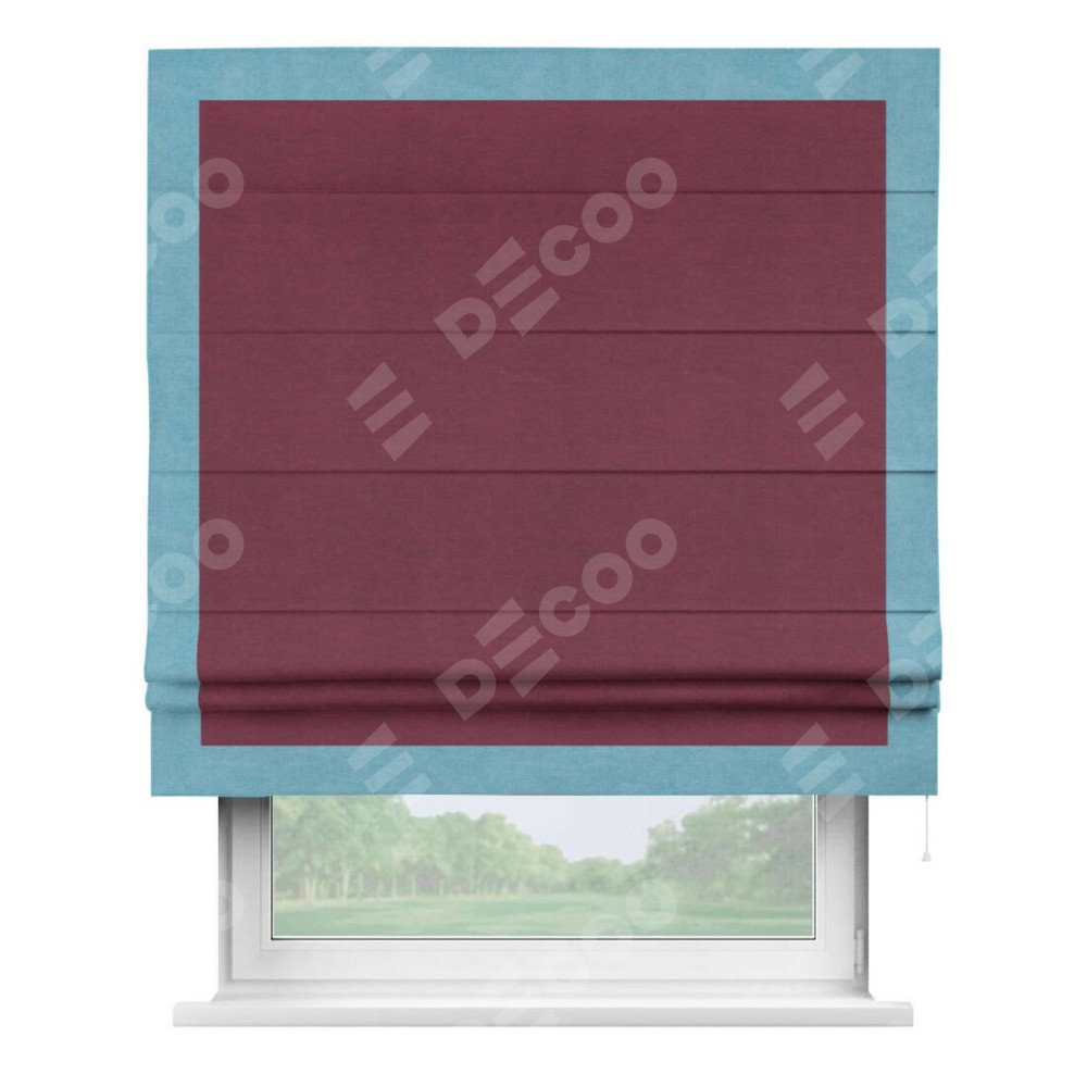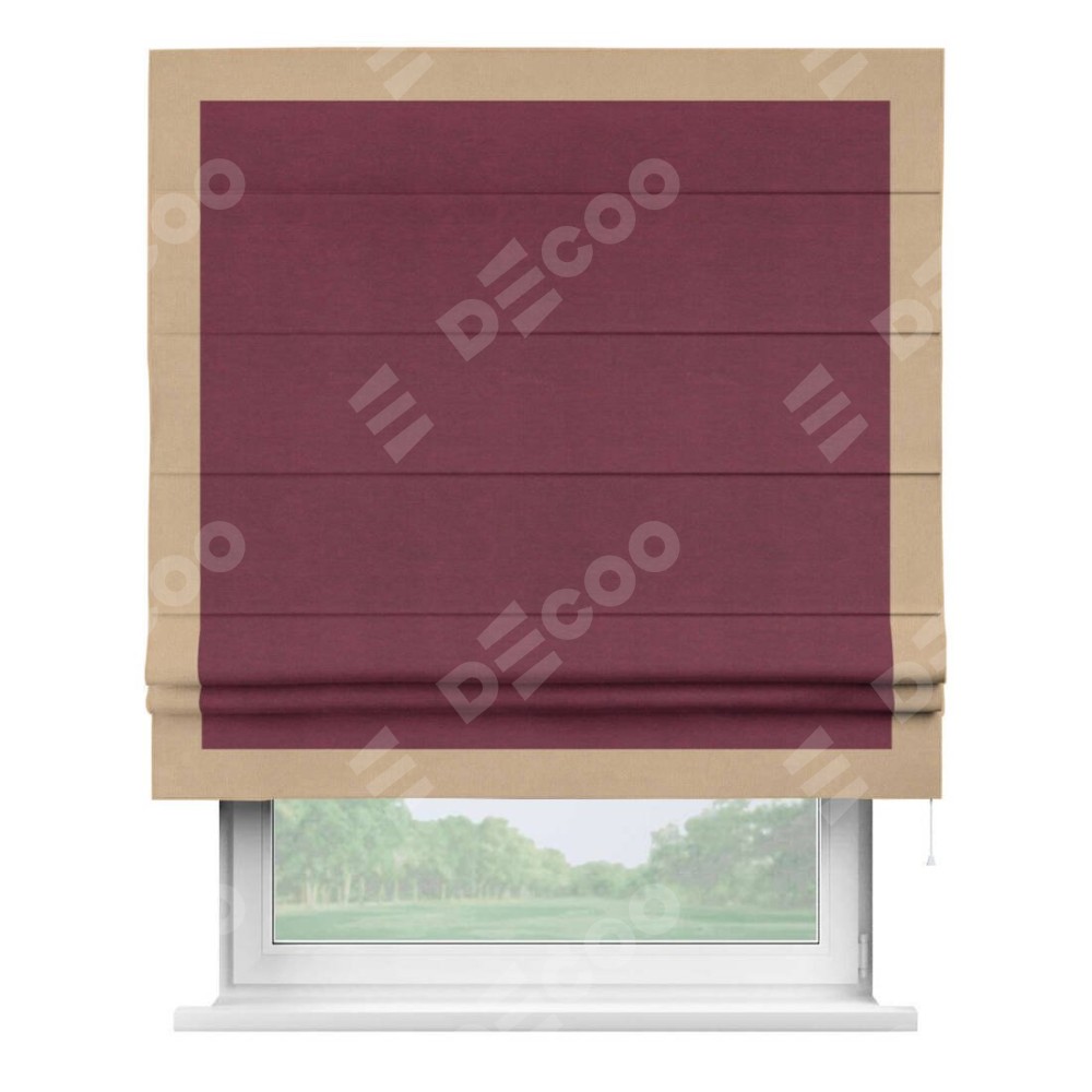 Римская штора «Кортин» с кантом Чесс, для проема, ткань вельвет бордовый