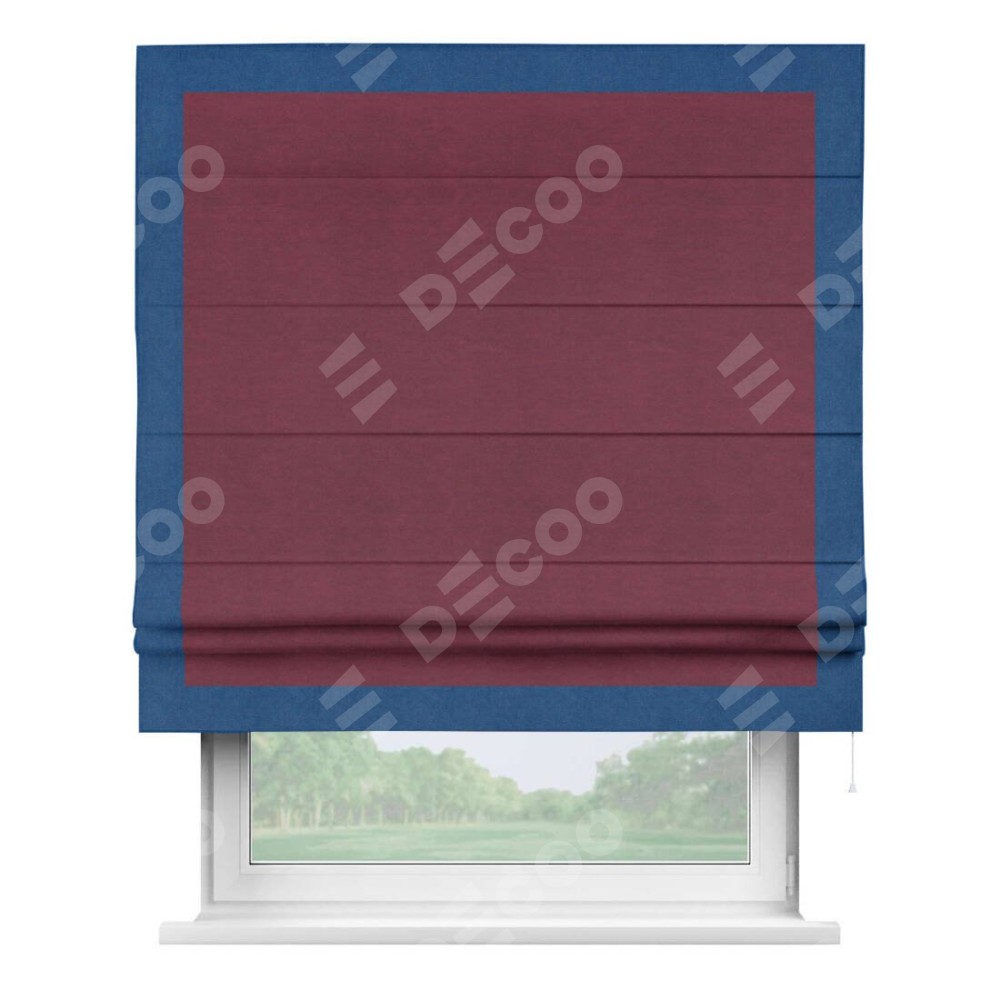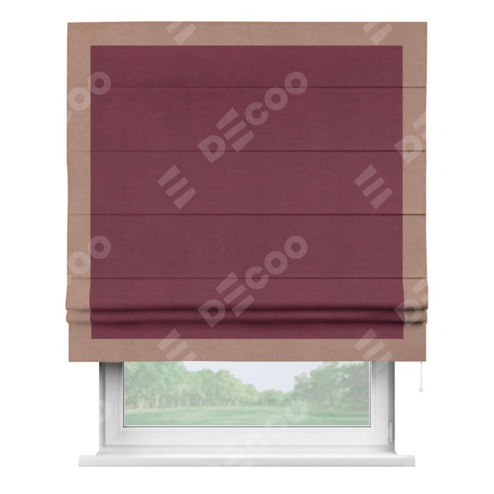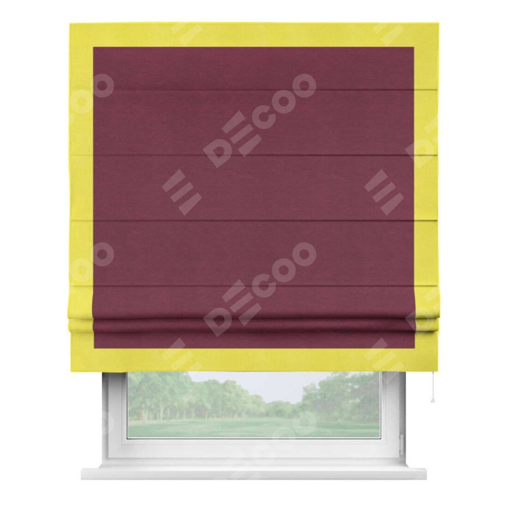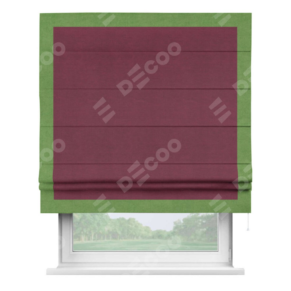 Римская штора «Кортин» с кантом Чесс, для проема, ткань вельвет бордовый